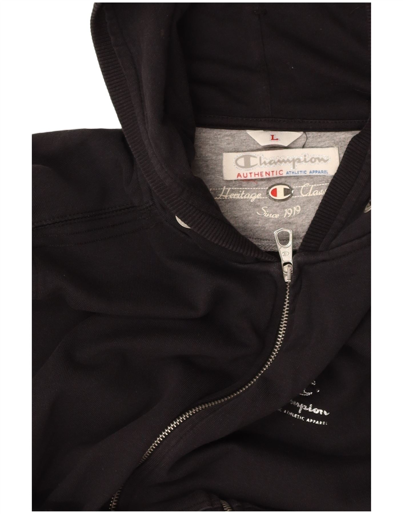 CHAMPION Womens Heritage Classics Zip Hoodie Sweater UK 16 Large Black
