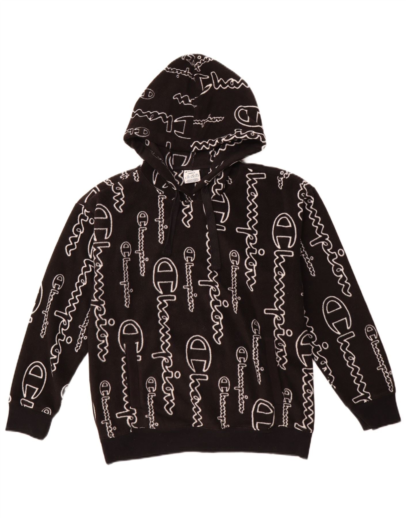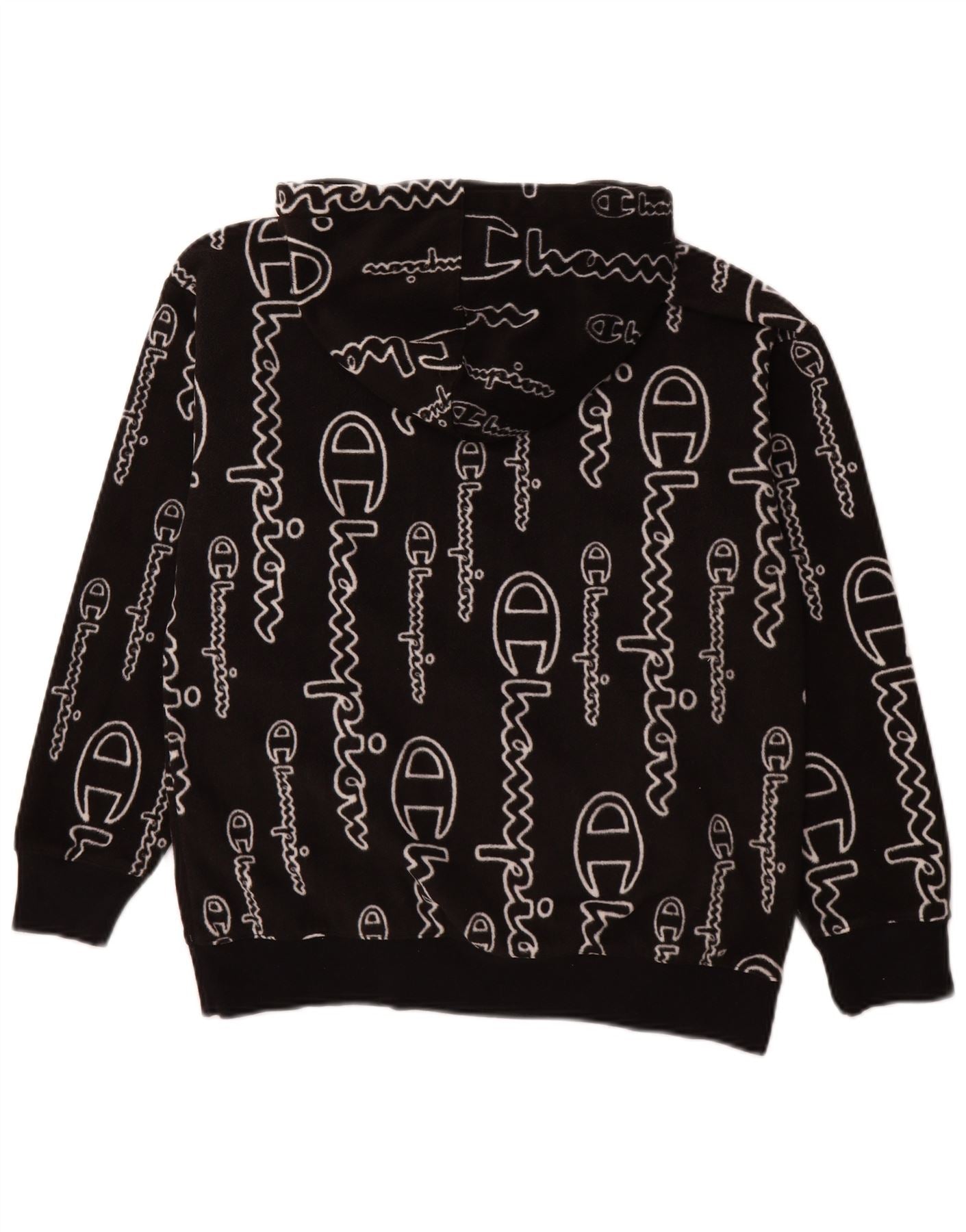 CHAMPION Womens Oversized Graphic Hooded Fleece Jumper UK 10 Small Black