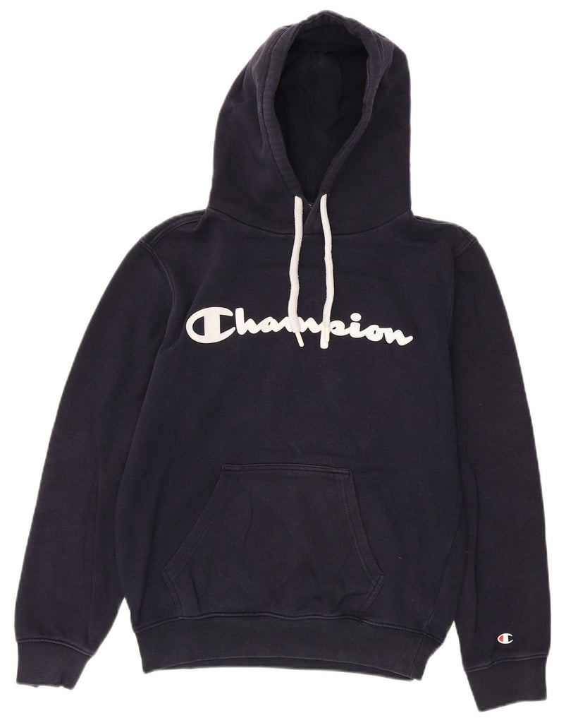CHAMPION Womens Oversized Graphic Hoodie Jumper UK 6 XS Navy Blue Cotton