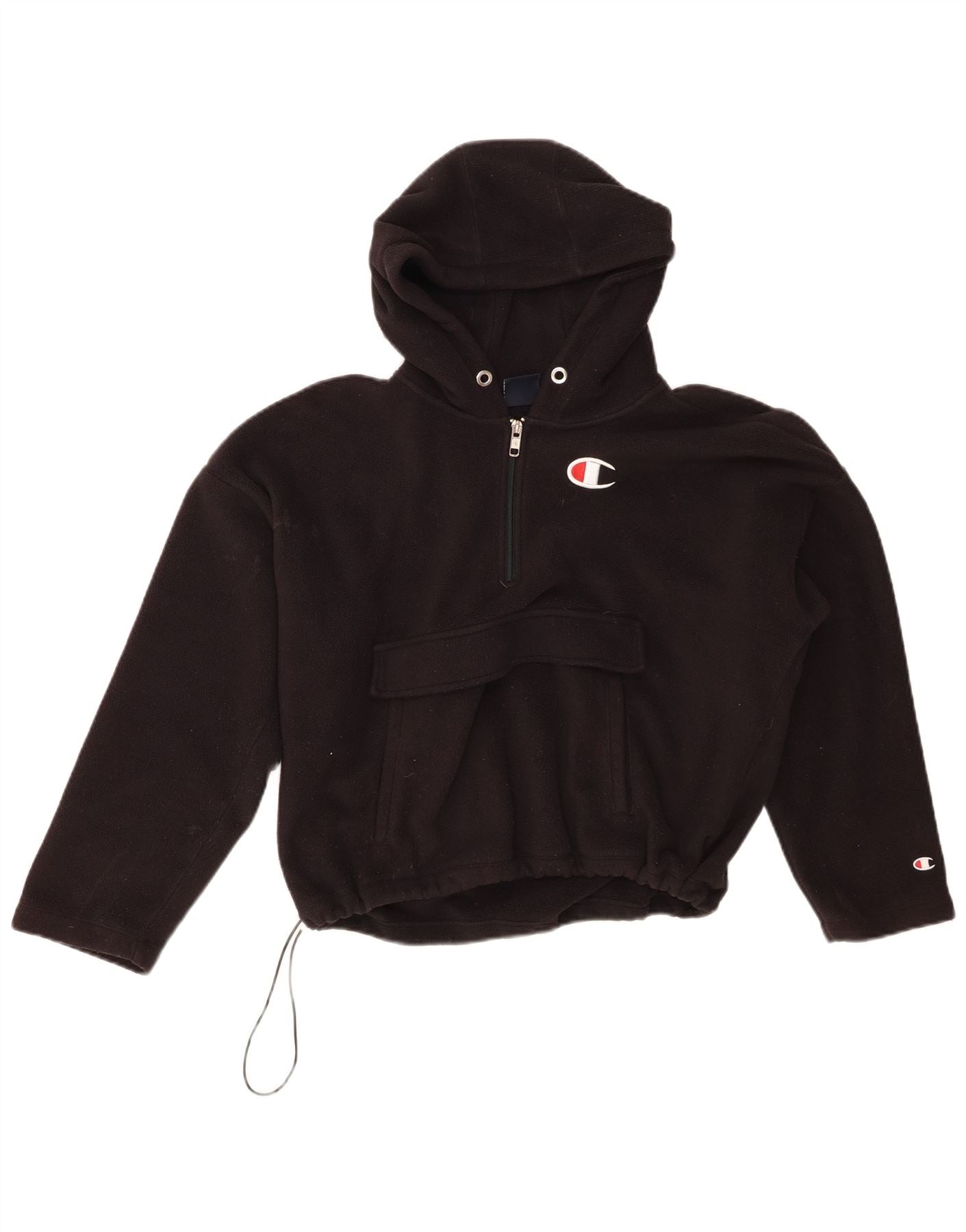 CHAMPION Womens Oversized Hooded Fleece Jumper UK 10 Small Black Polyester