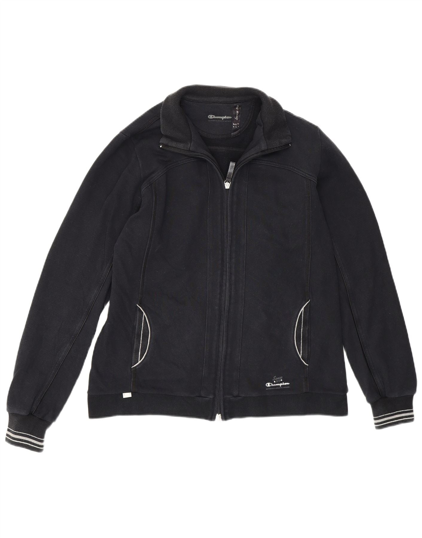 - Descripción de IA: Esta sudadera tipo jersey para mujer Champion está confeccionada con un cómodo tejido de punto negro. Cuenta con escote con cuello y cierre de cremallera completa para un uso versátil. Las mangas largas y el corte regular garantizan facilidad de movimiento y comodidad. Sutiles rayas blancas adornan los puños, añadiendo un toque de detalle. Un discreto logotipo de Champion proporciona reconocimiento de marca. Esta prenda versátil es ideal para deportes o uso informal.