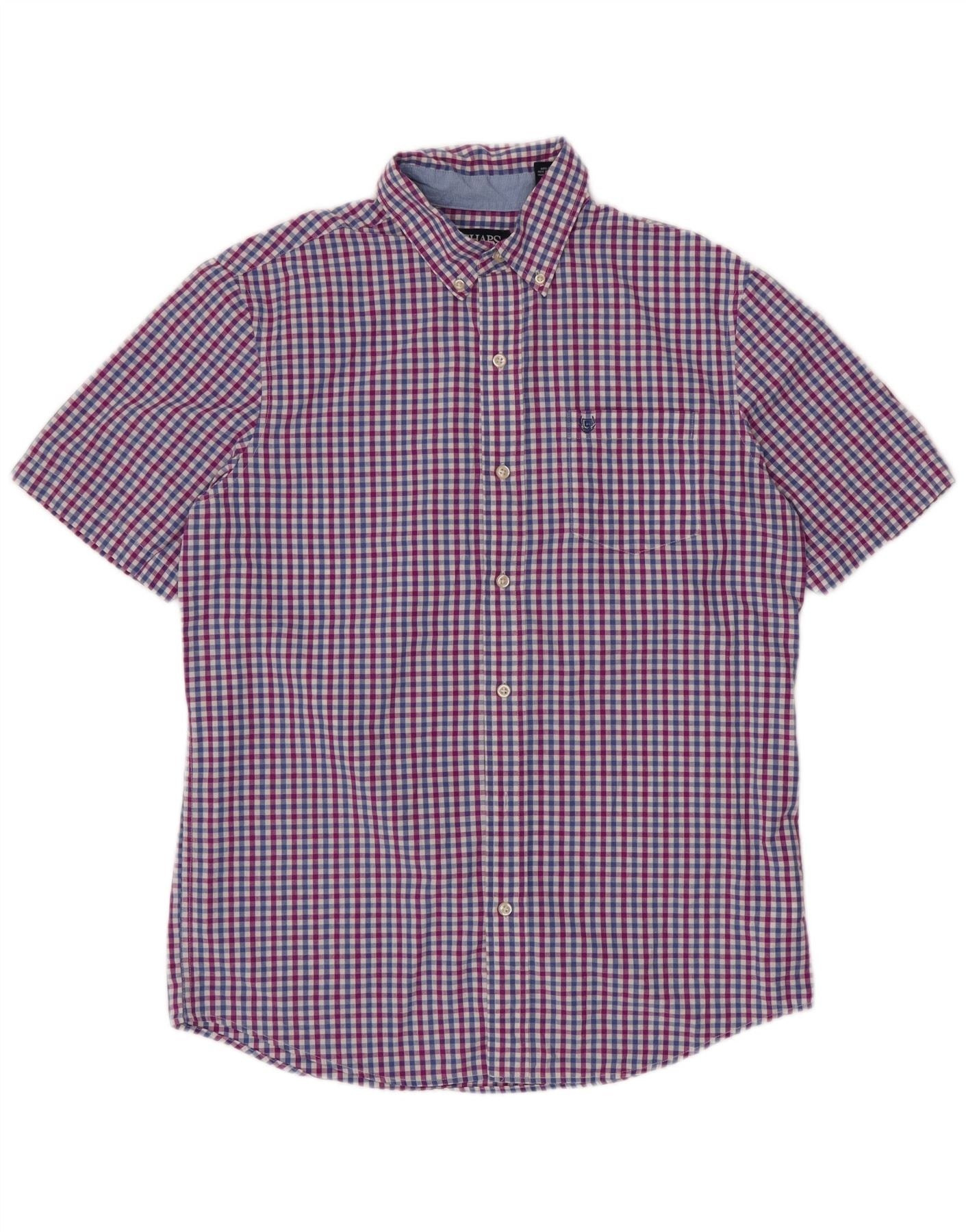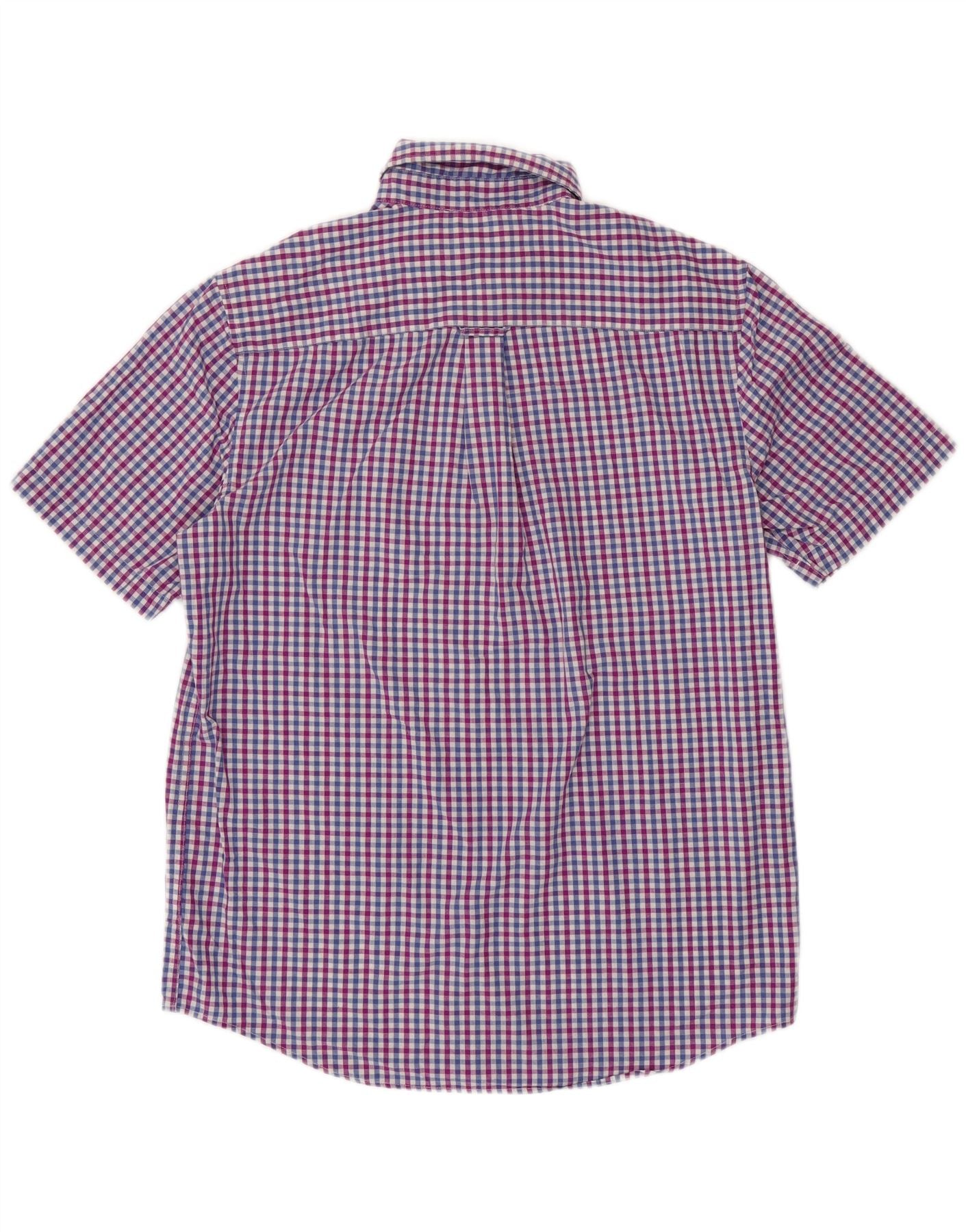 CHAPS Camisa de manga corta de fácil cuidado para hombre de algodón a cuadros azul medio
