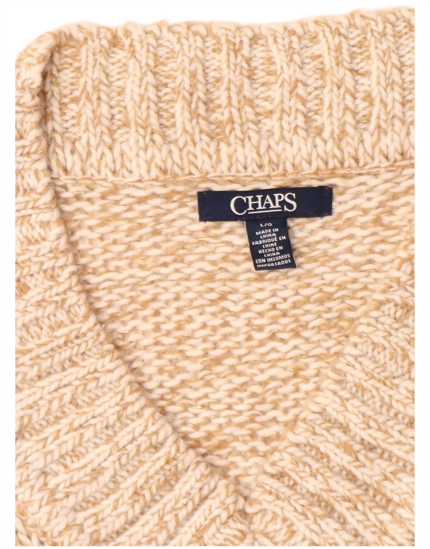 CHAPS Suéter con cuello en V para mujer UK 40 Grande Acrílico moteado beige
