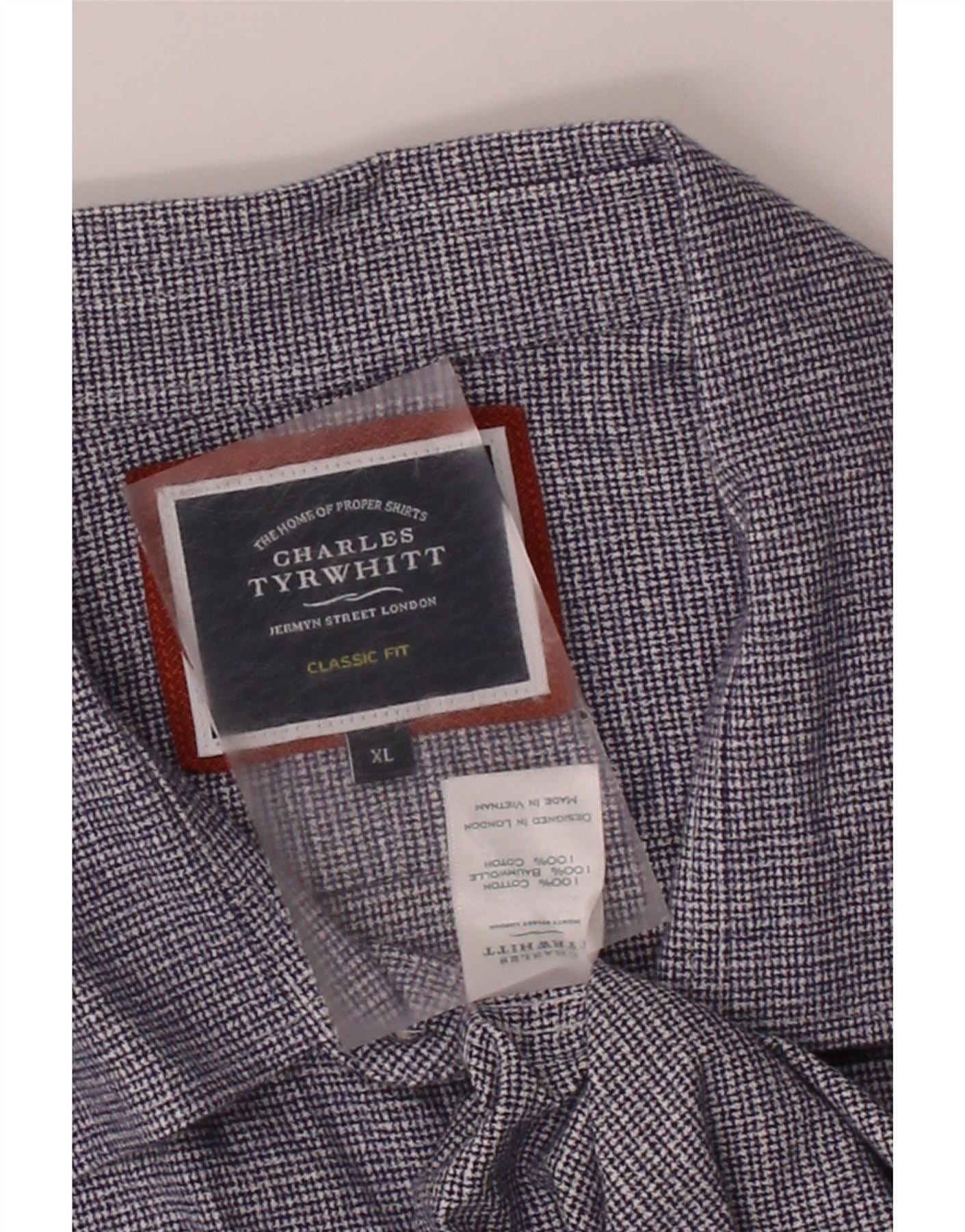 CHARLES TYRWHITT Mens Classic Fit Shirt XL Navy Blue Houndstooth Cotton