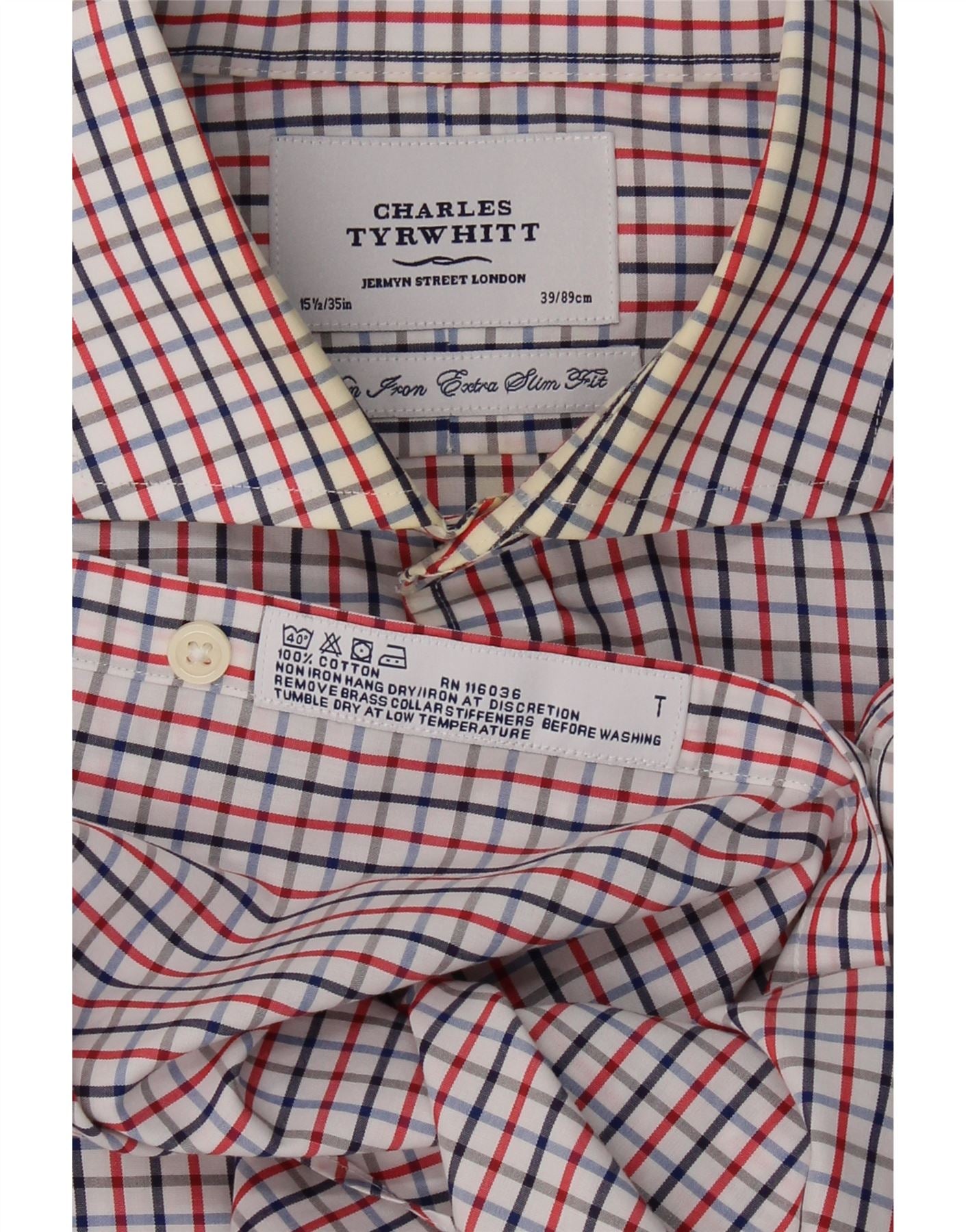 CHARLES TYRWHITT Mens Formal Shirt Size 15 1/2 39 Medium Red Check Cotton