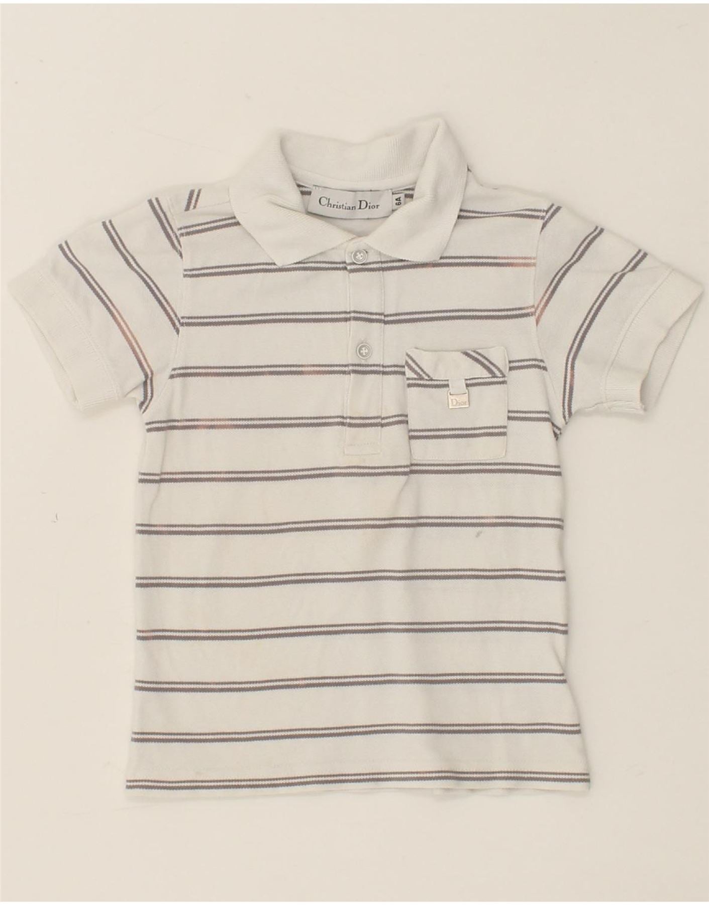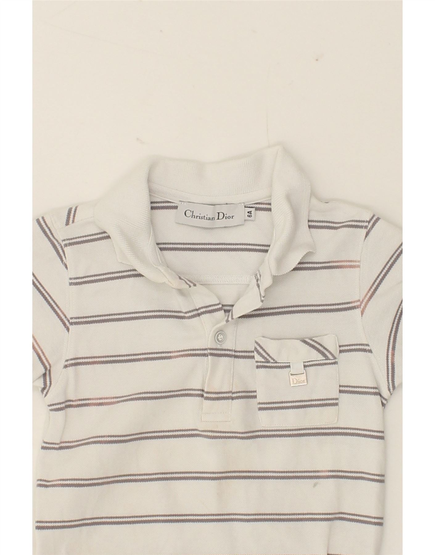CHRISTIAN DIOR Boys Polo Shirt 5-6 Years White Striped Cotton