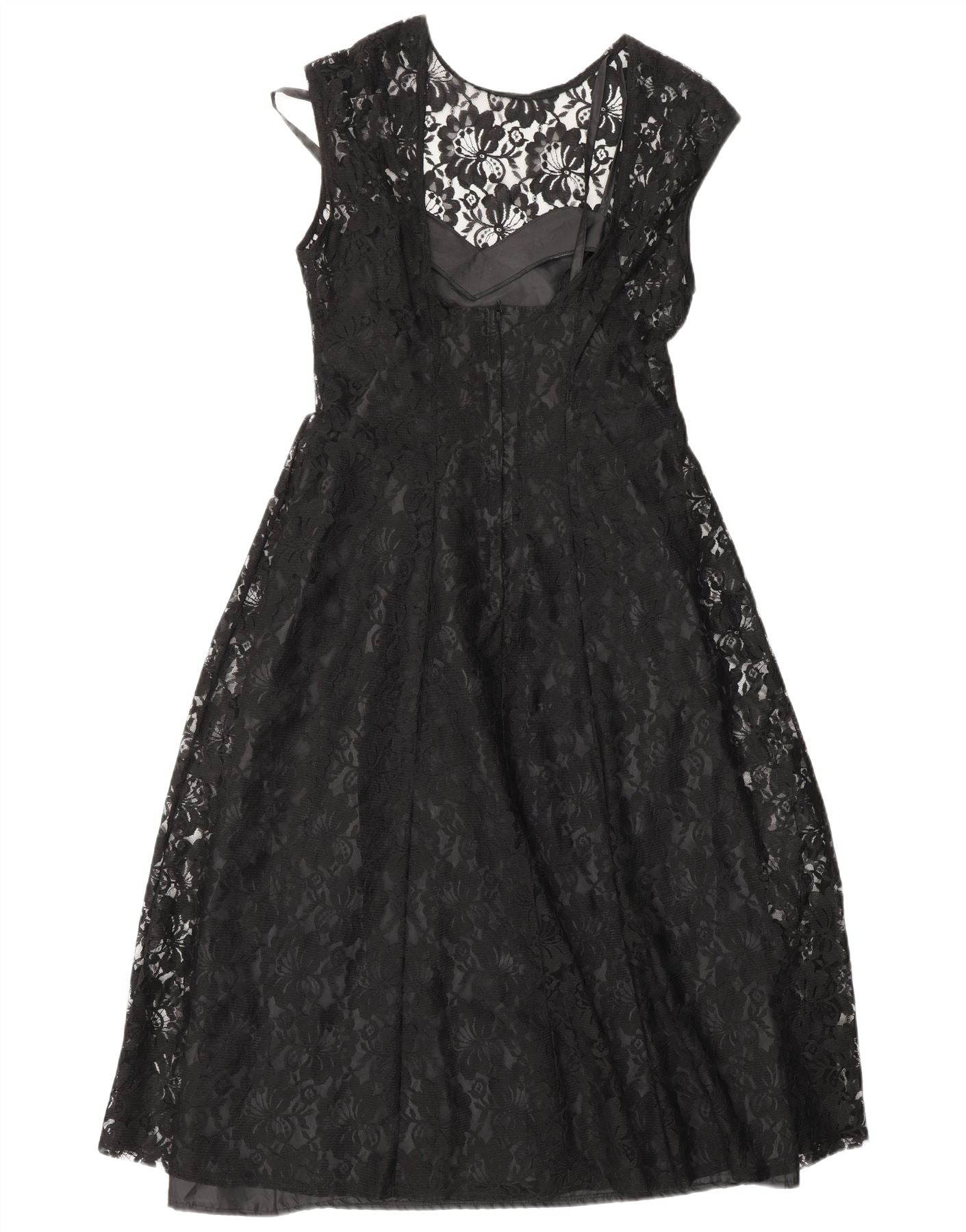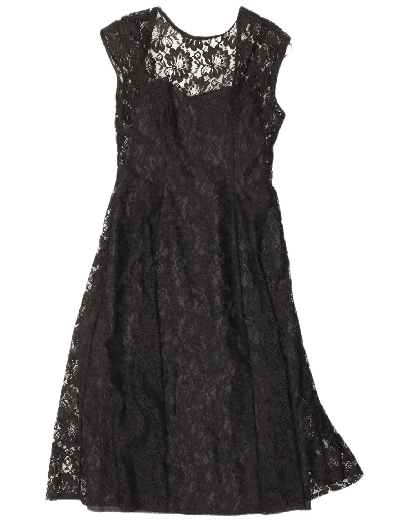 CLASSIC Vestido acampanado para mujer UK 40 Mediano Nylon floral negro