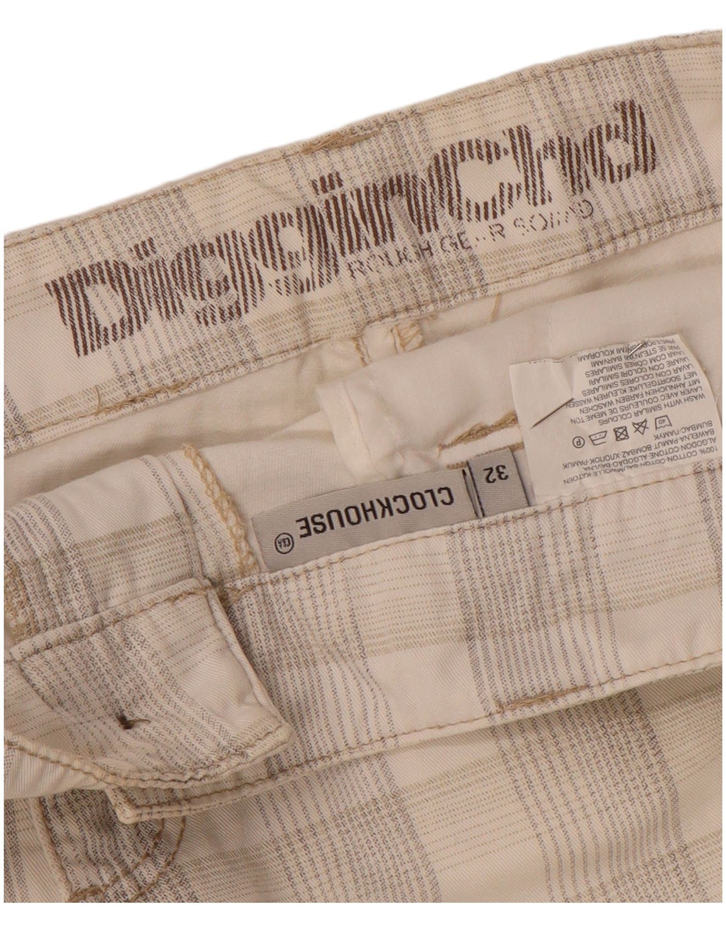 CLOCK HOUSE Pantalones cortos tipo cargo para hombre W32 Medium Off White Check Cotton