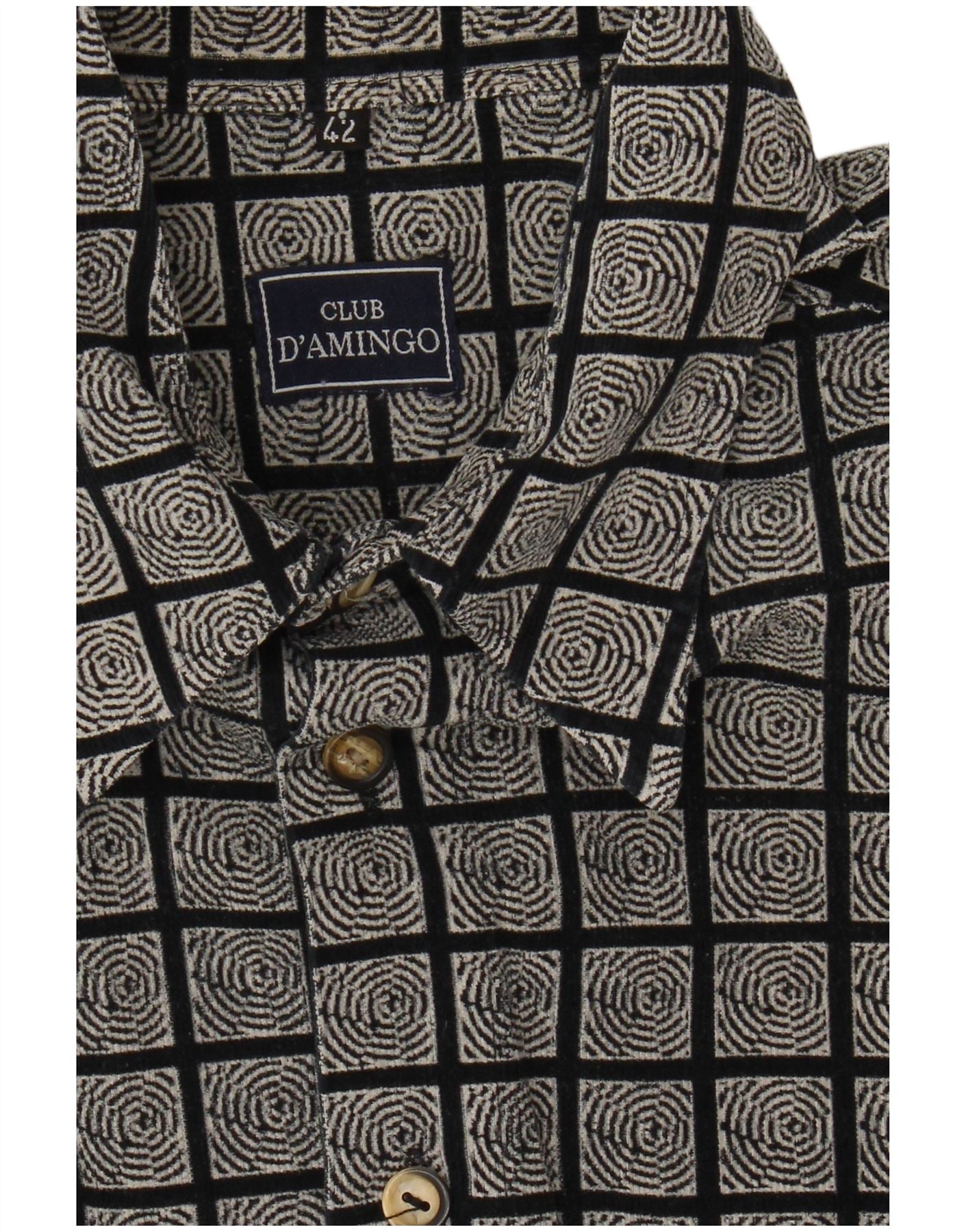 CLUB D'AMINGO Mens Corduroy Shirt Size 42 Large Navy Blue Geometric