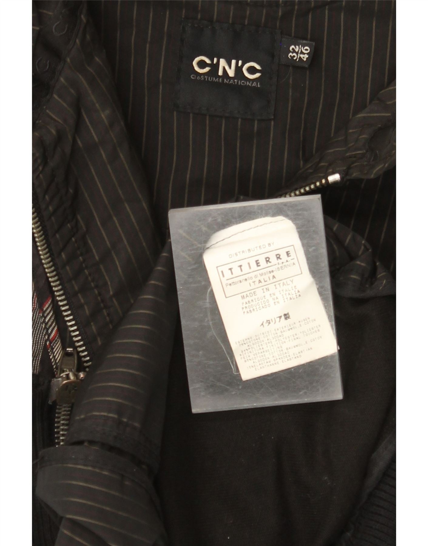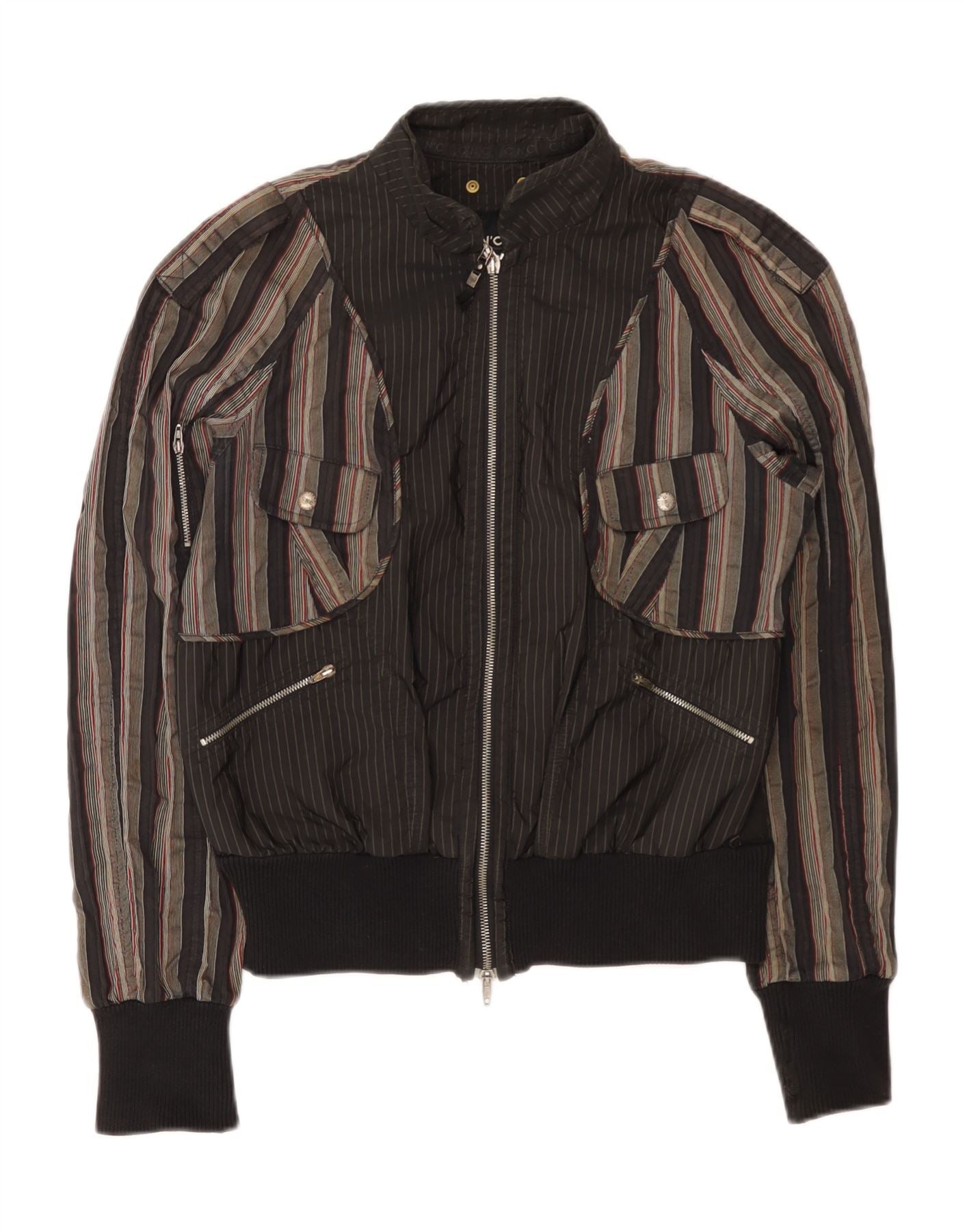 CNC COSTUME NATIONAL Chaqueta Bomber para Hombre IT 36 Small Algodón a Rayas Negras