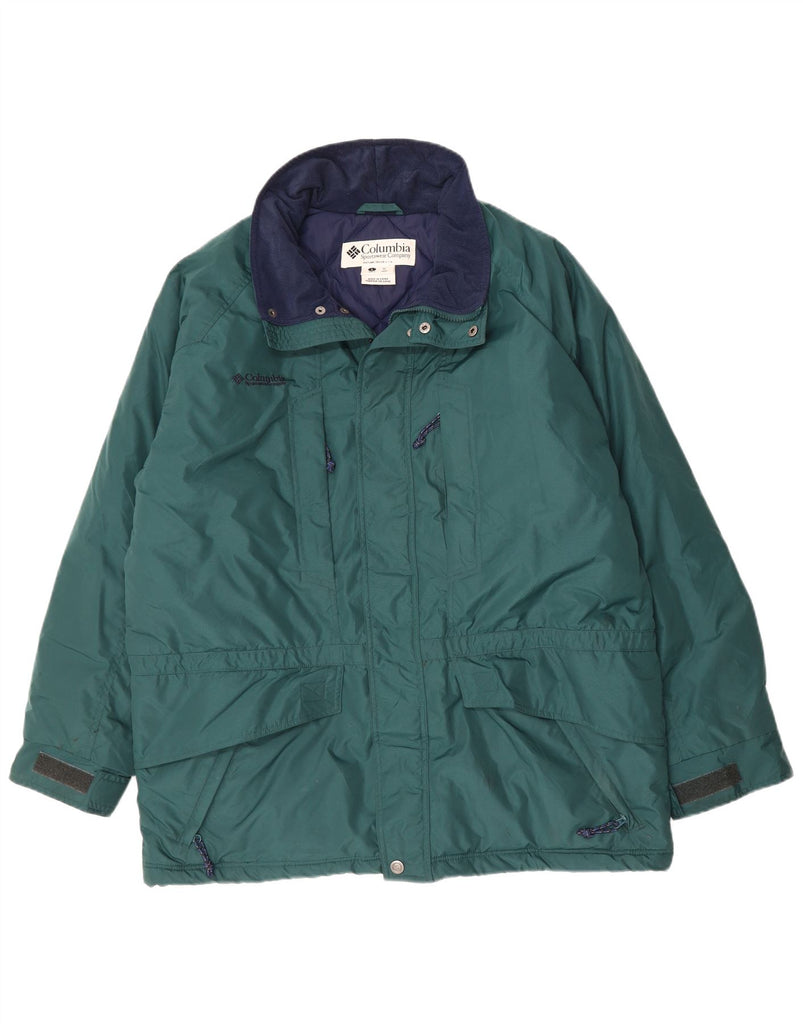 - AI Description: This Columbia mens Windbreaker Jacket is crafted from a durable green woven fabric. It features a collared neckline and long sleeves, offering practical coverage. The full zip closure ensures ease of wear. Designed to be windproof, this jacket includes functional pockets for essentials. A regular fit provides comfortable movement. A subtle brand logo completes the sports-inspired design.