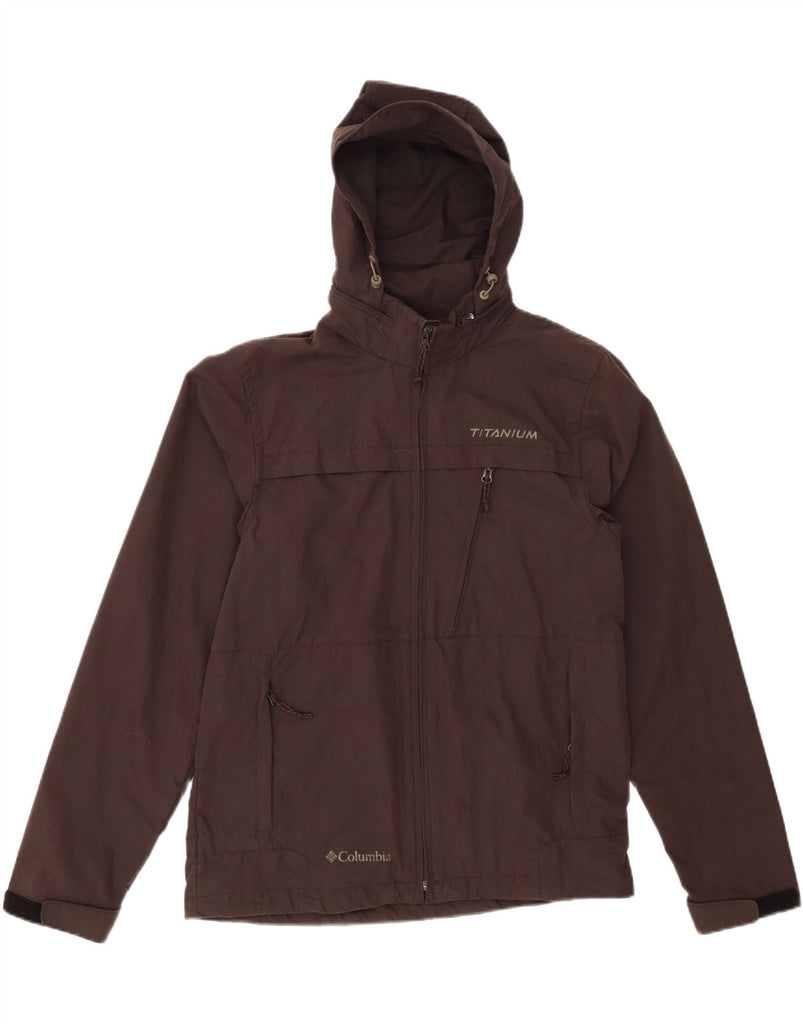 COLUMBIA Chaqueta impermeable con capucha de titanio para hombre UK 36 Small Marrón Algodón
