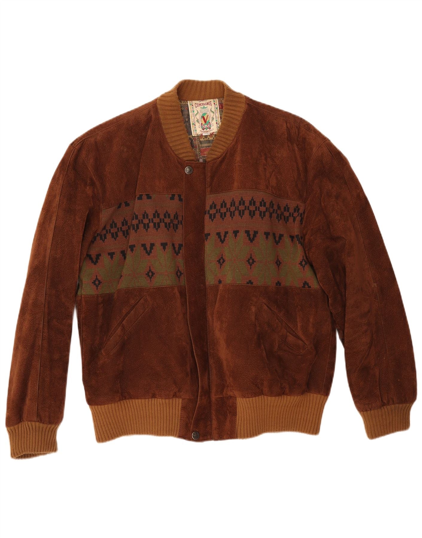 COMPAGNIE Chaqueta bomber de ante holgada para hombre UK 38 Marrón medio Fair Isle