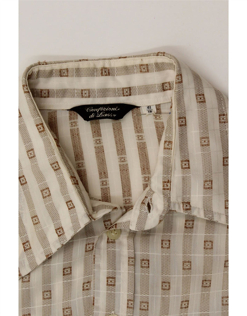 CONFEZIONI DI LUSSO Camisa Hombre Talla 16 41 Grande Beige Geométrico