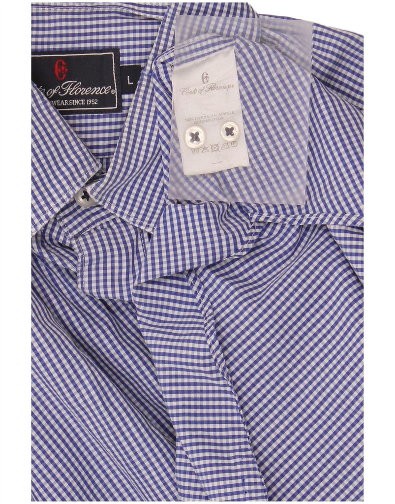 CONTE OF FLORENCE Camisa para hombre de algodón a cuadros azul grande