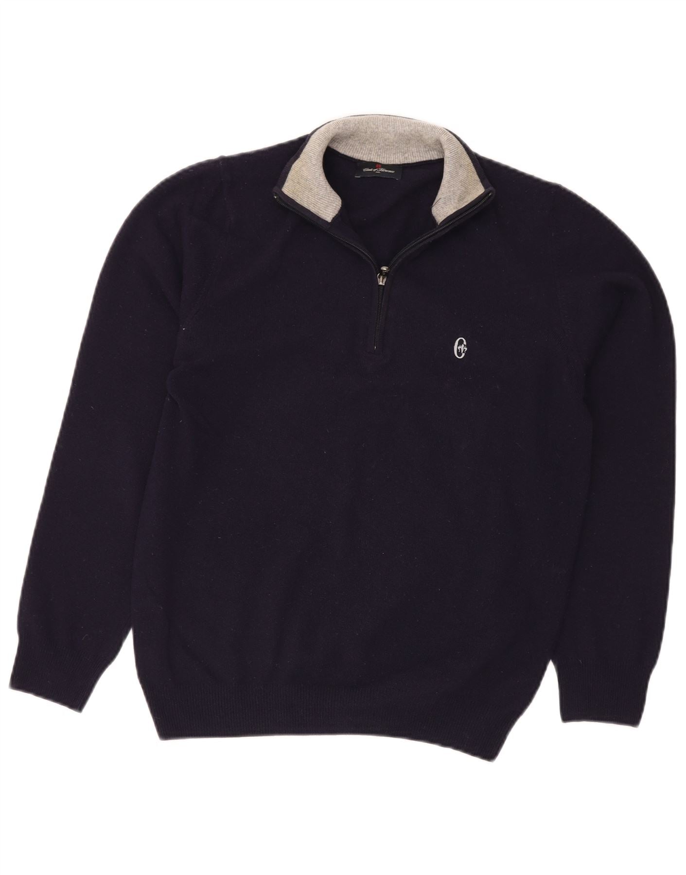 CONTE OF FLORENCE Jersey de cuello con cremallera para hombre pequeño de lana azul marino