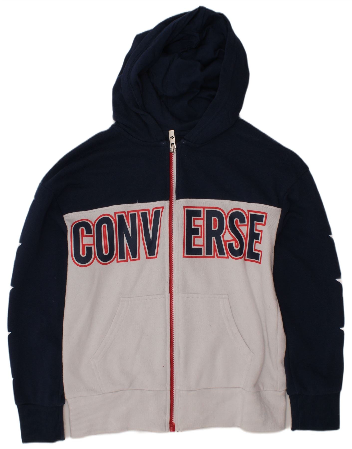 CONVERSE Sudadera con capucha y cremallera para niños 8-9 años Small Azul marino Colorblock