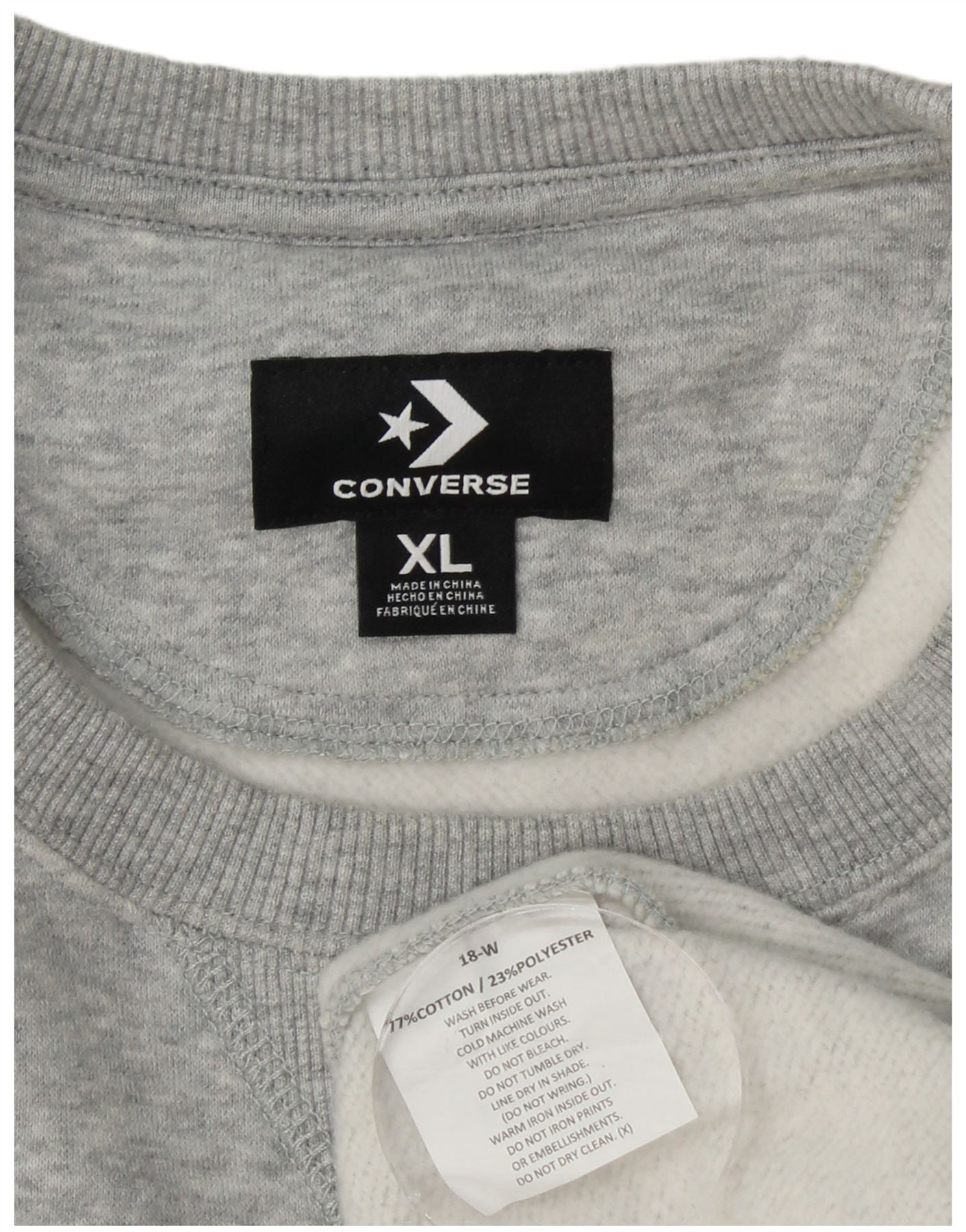 CONVERSE Hombre Sudadera gráfica Jumper XL Gris Colorblock Algodón