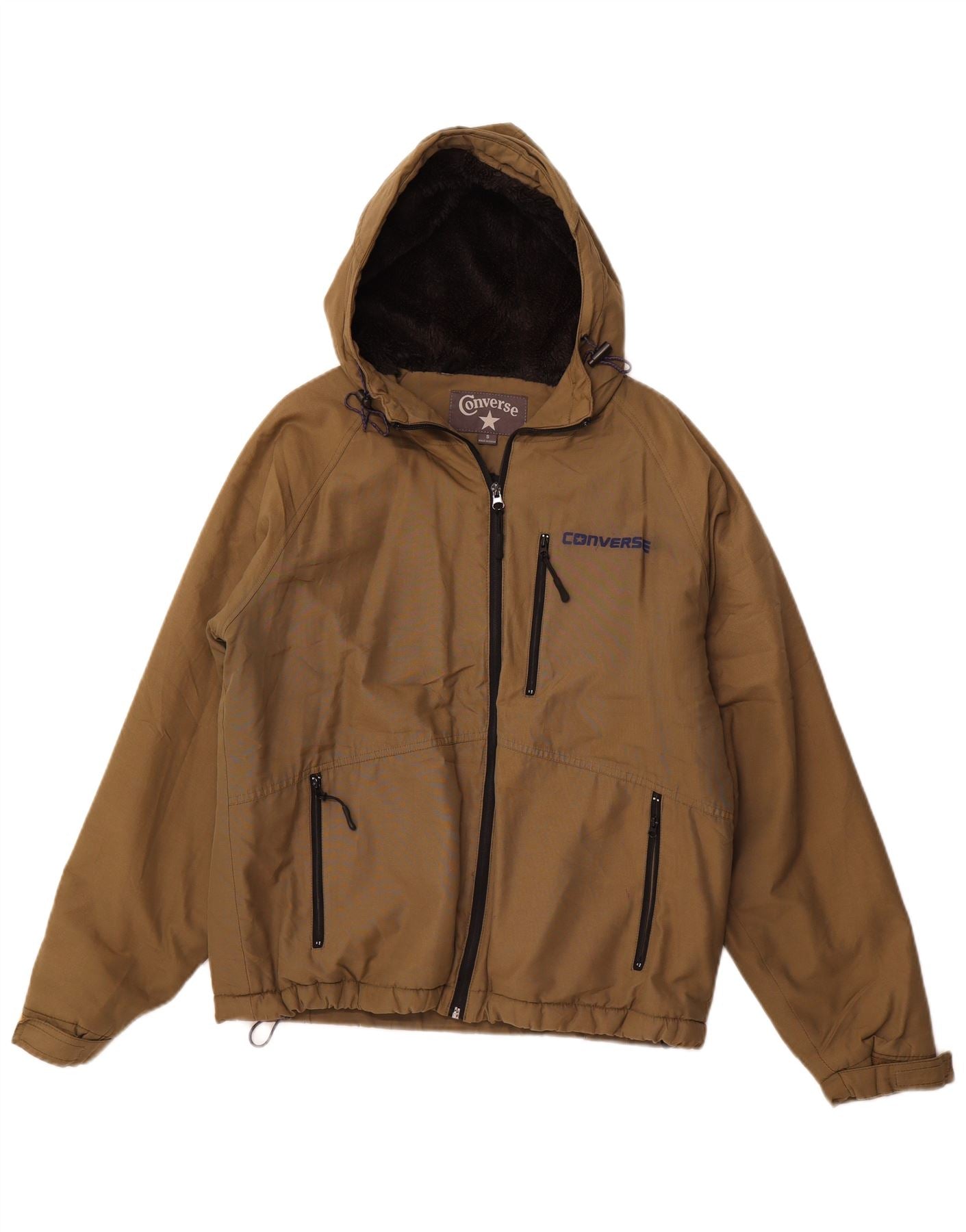 ADIDAS Chaqueta impermeable con capucha para hombre UK 36 Small Beige Colorblock Poliéster