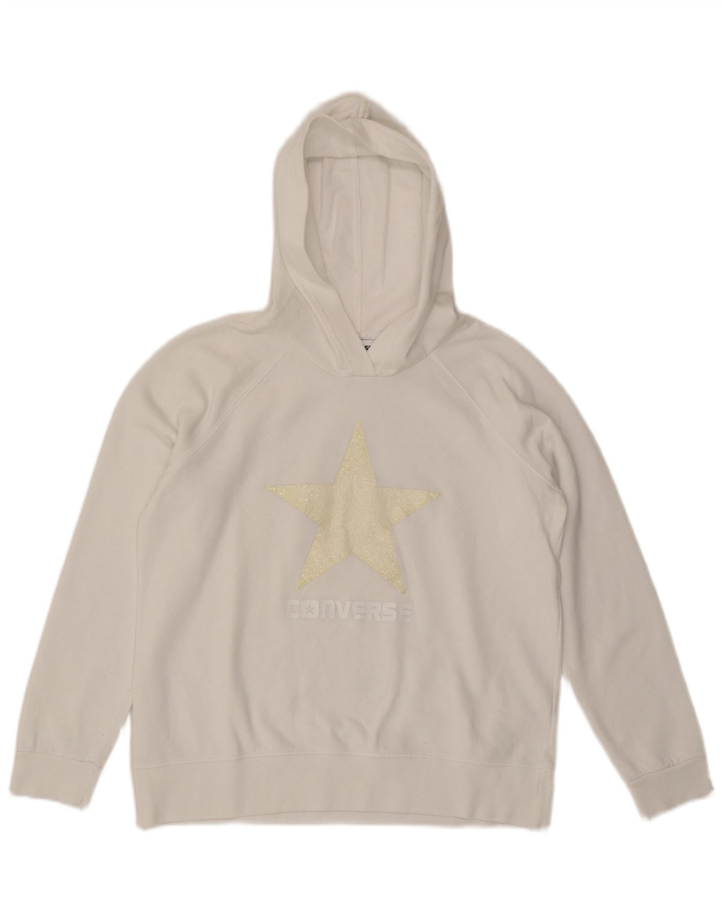 CONVERSE Jersey con capucha gráfica para mujer Reino Unido 14 Algodón blanco mediano