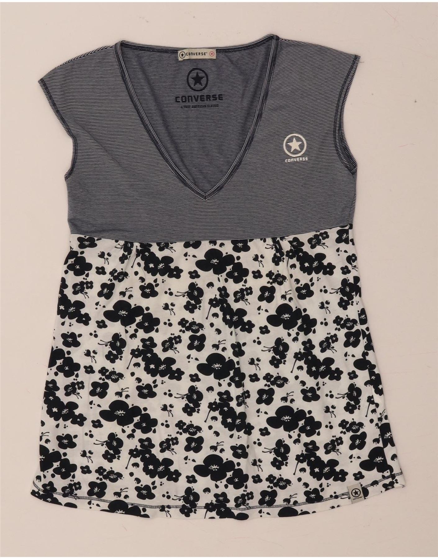 CONVERSE Blusa sin mangas para mujer Top UK 12 Algodón floral azul marino mediano