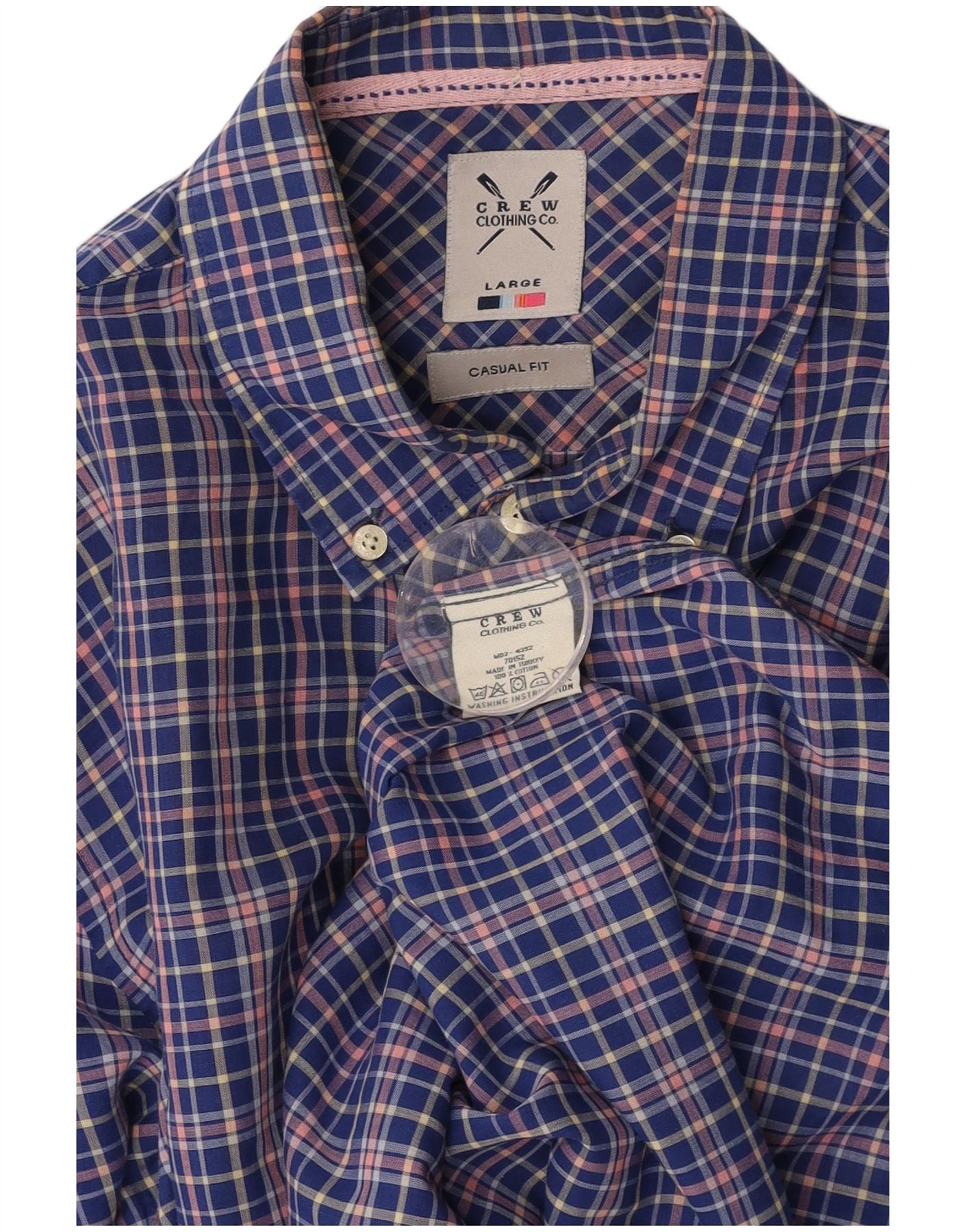 CREW CLOTHING Camisa de corte casual para hombre, algodón a cuadros azul grande