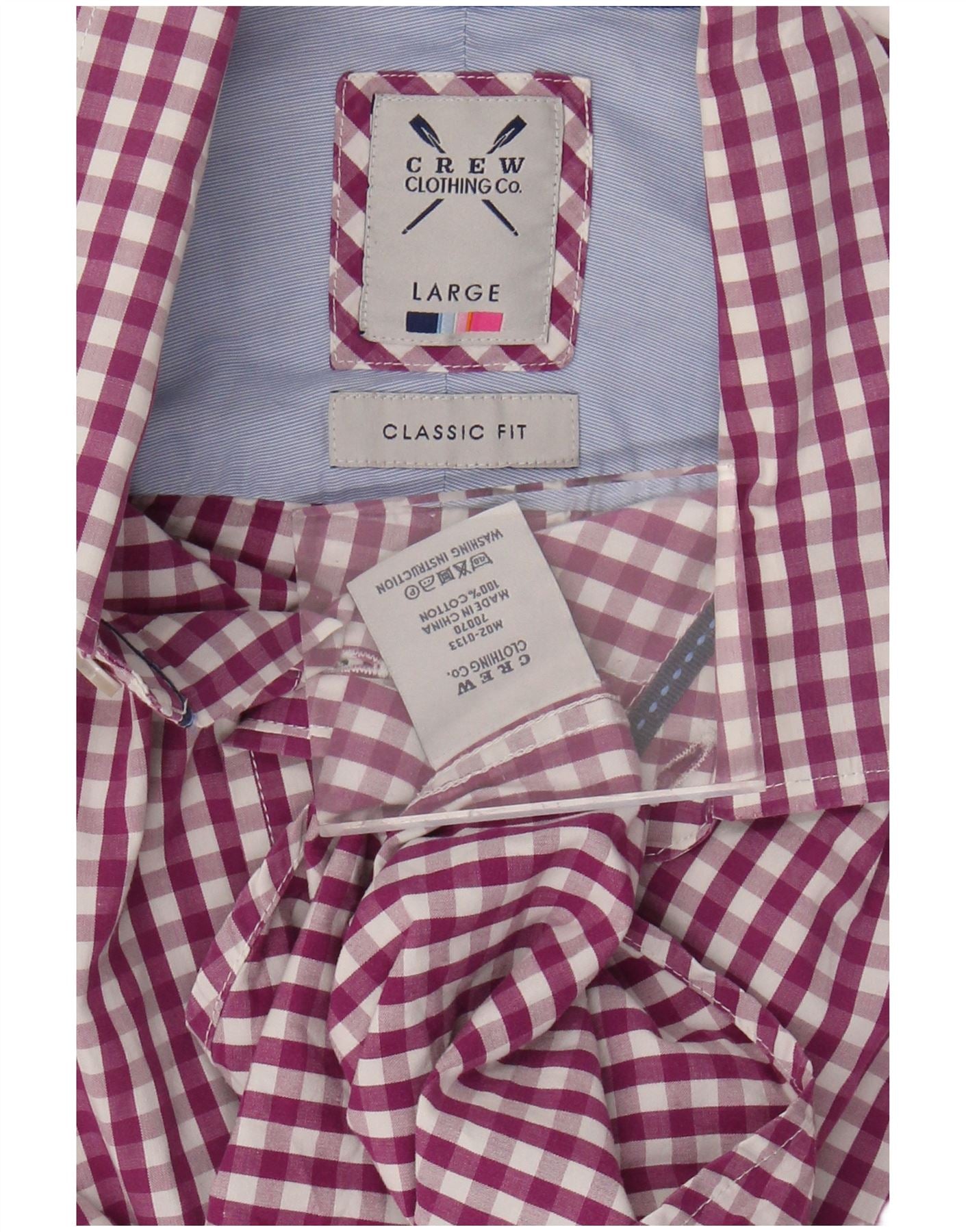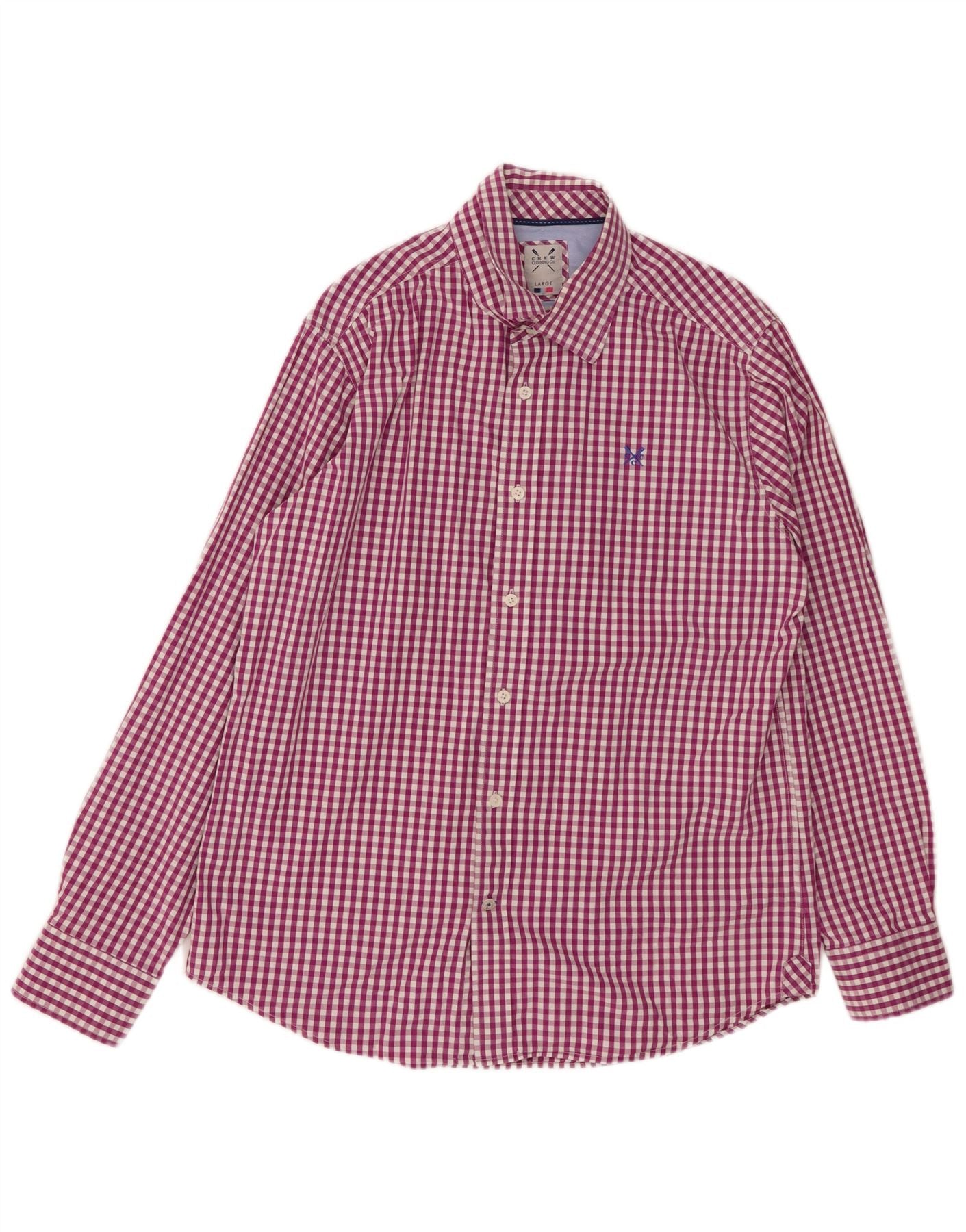 CREW CLOTHING Camisa de corte clásico para hombre de algodón a cuadros morado grande