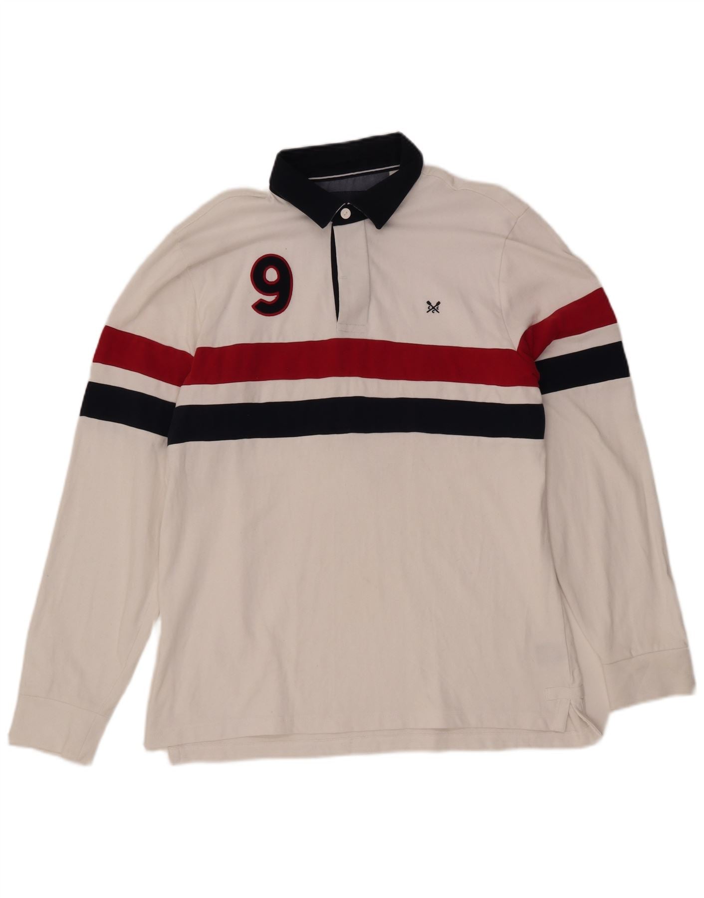 CREW CLOTHING Polo de rugby con gráfico para hombre, color blanco grande, color block