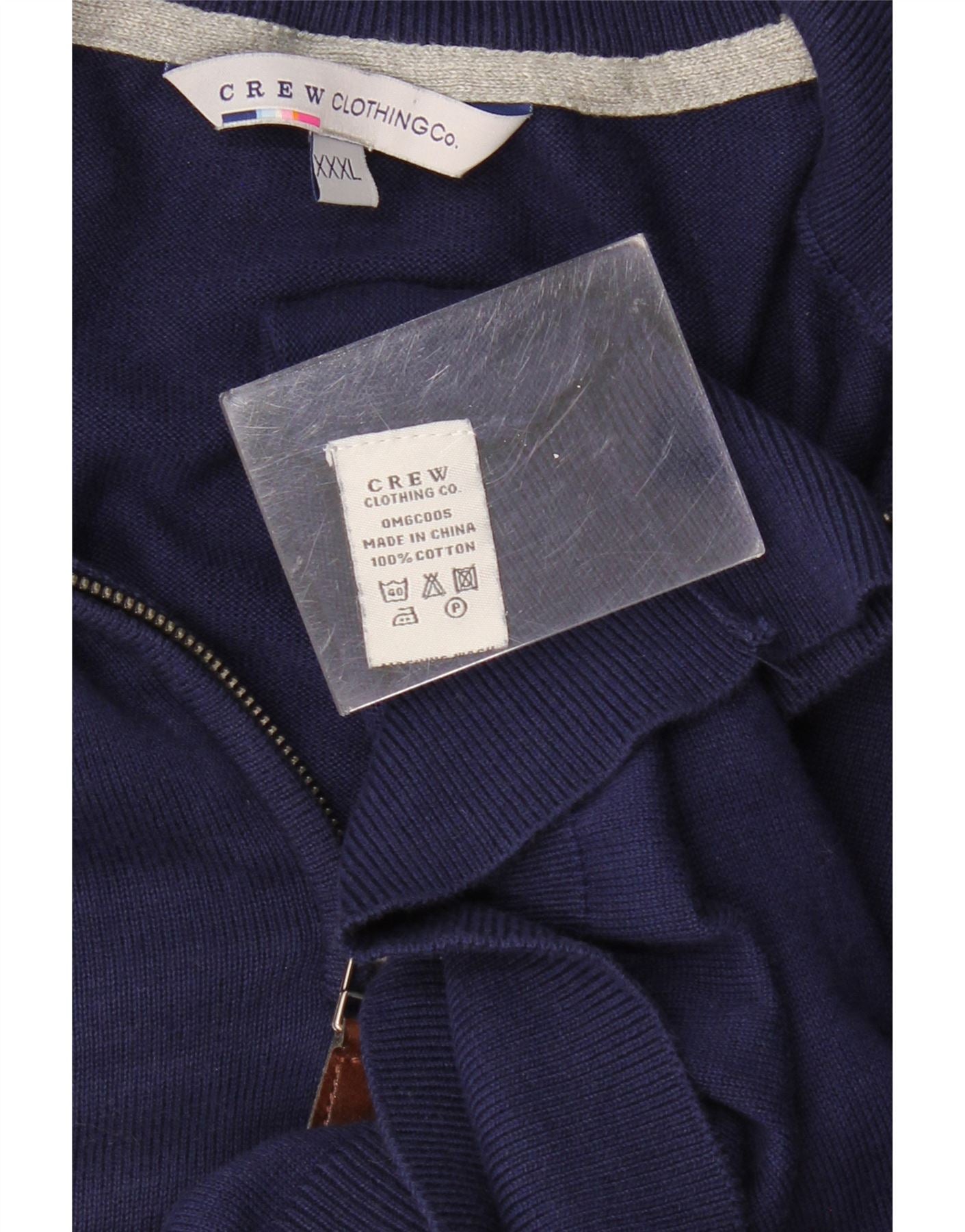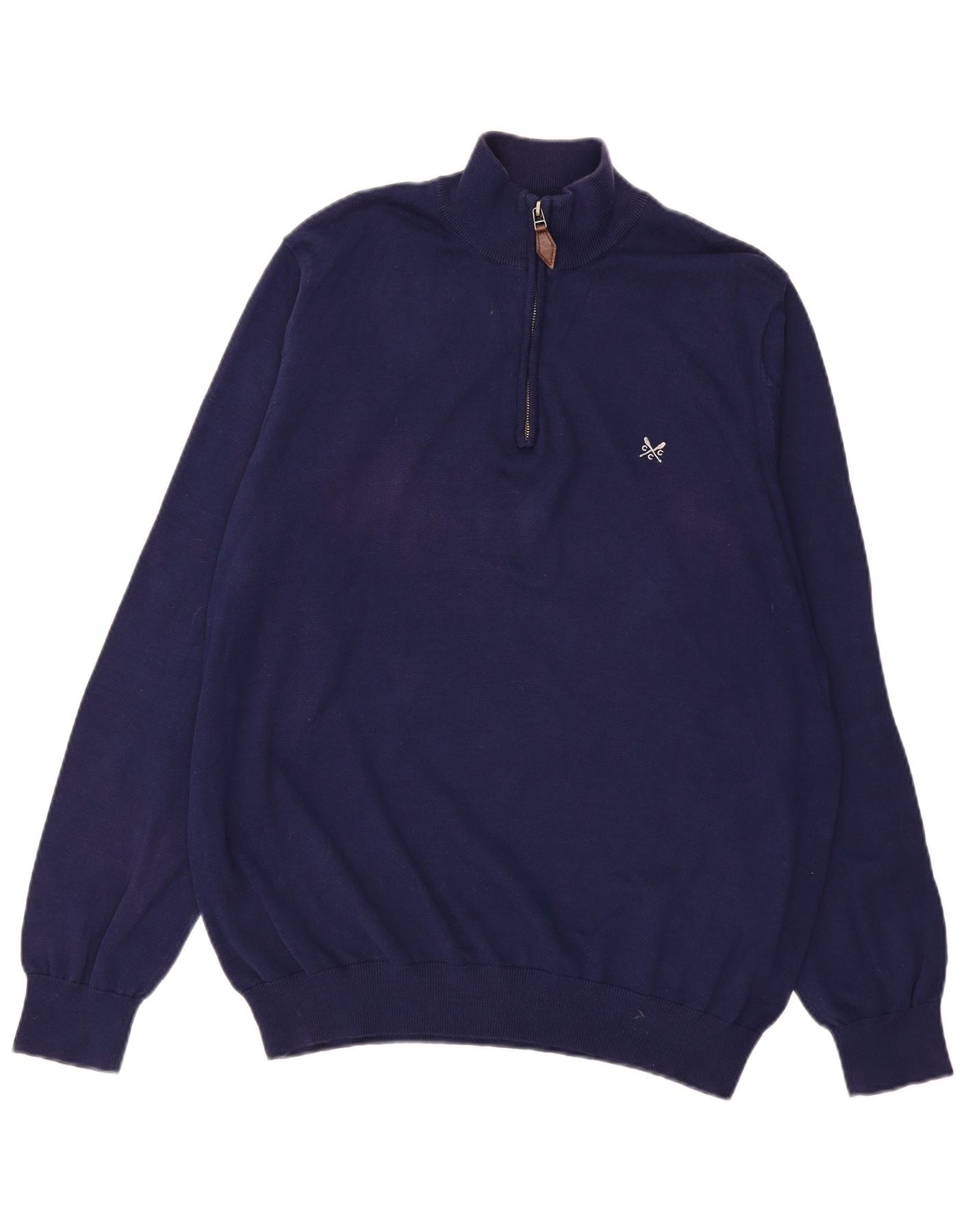CREW CLOTHING Suéter tipo jersey con cuello y cremallera para hombre 3XL Algodón azul marino