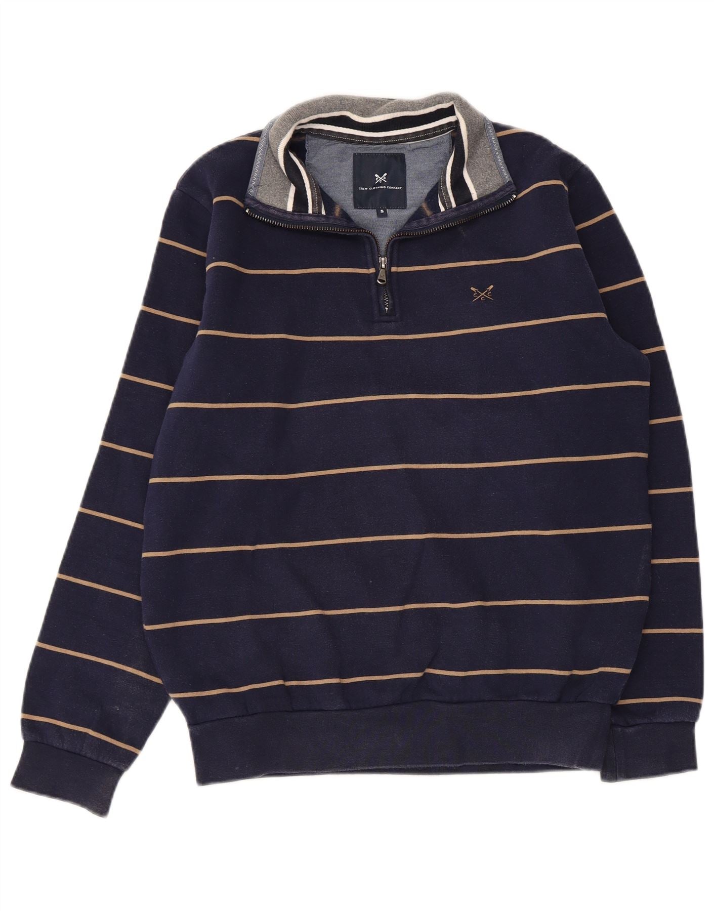 CREW CLOTHING Sudadera con cuello y cremallera para hombre, jersey pequeño, azul marino, a rayas