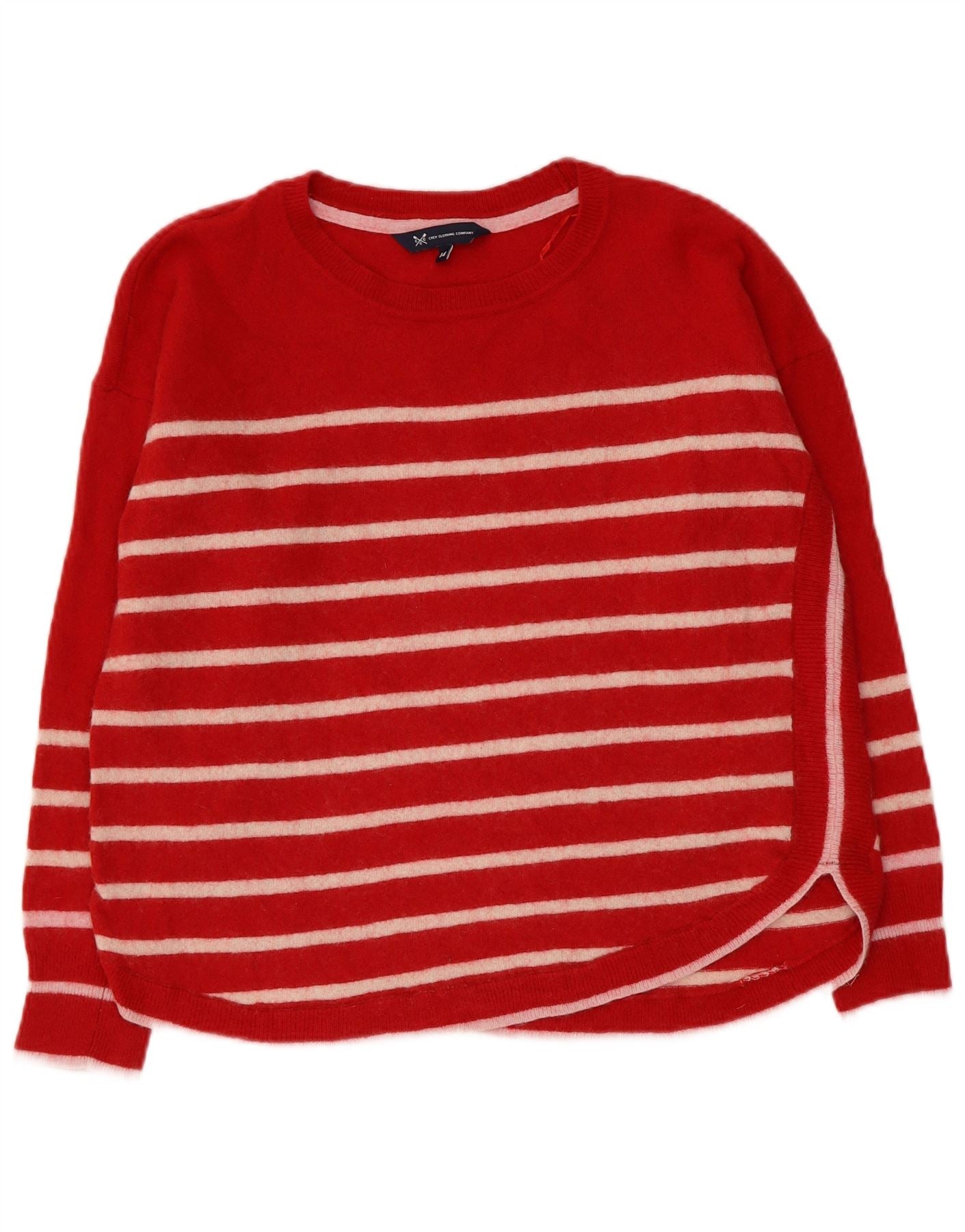 CREW CLOTHING Suéter tipo jersey con cuello barco para mujer UK 40 Lana a rayas rojas grande