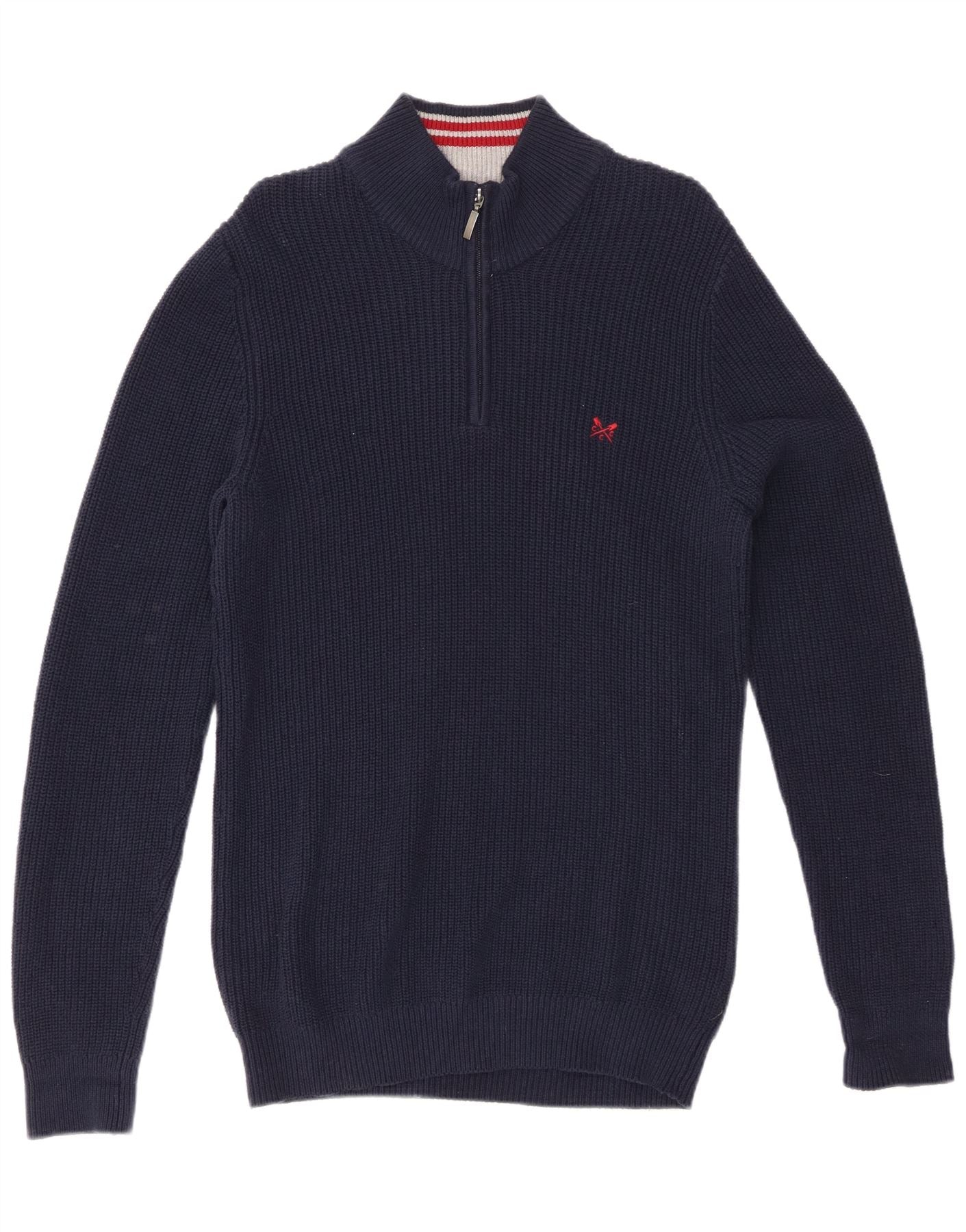 CREW CLOTHING Suéter tipo jersey con cuello y cremallera para mujer UK 40 Algodón azul marino mediano