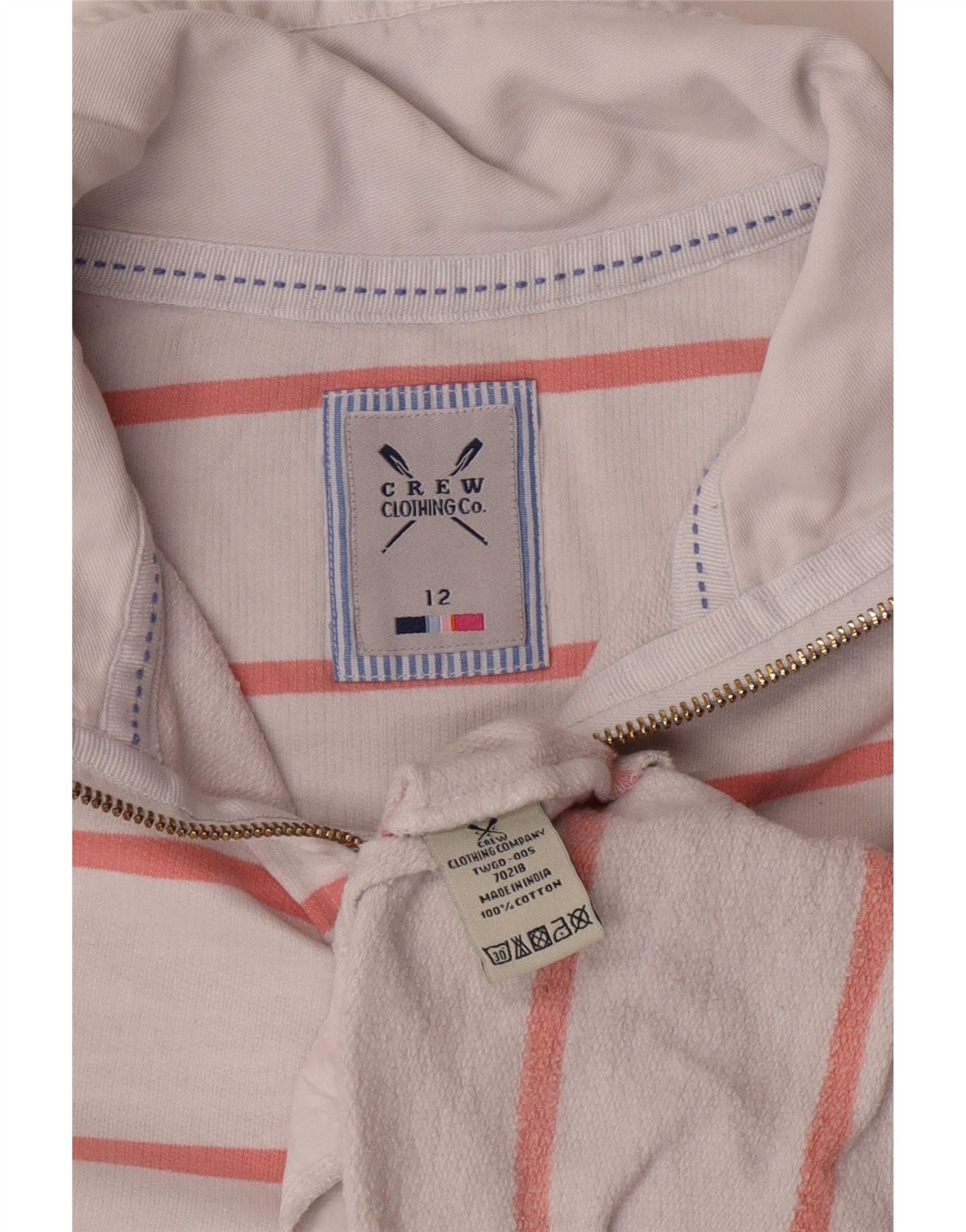 CREW CLOTHING Sudadera con cuello y cremallera para mujer, talla 40, talla mediana, color blanco a rayas