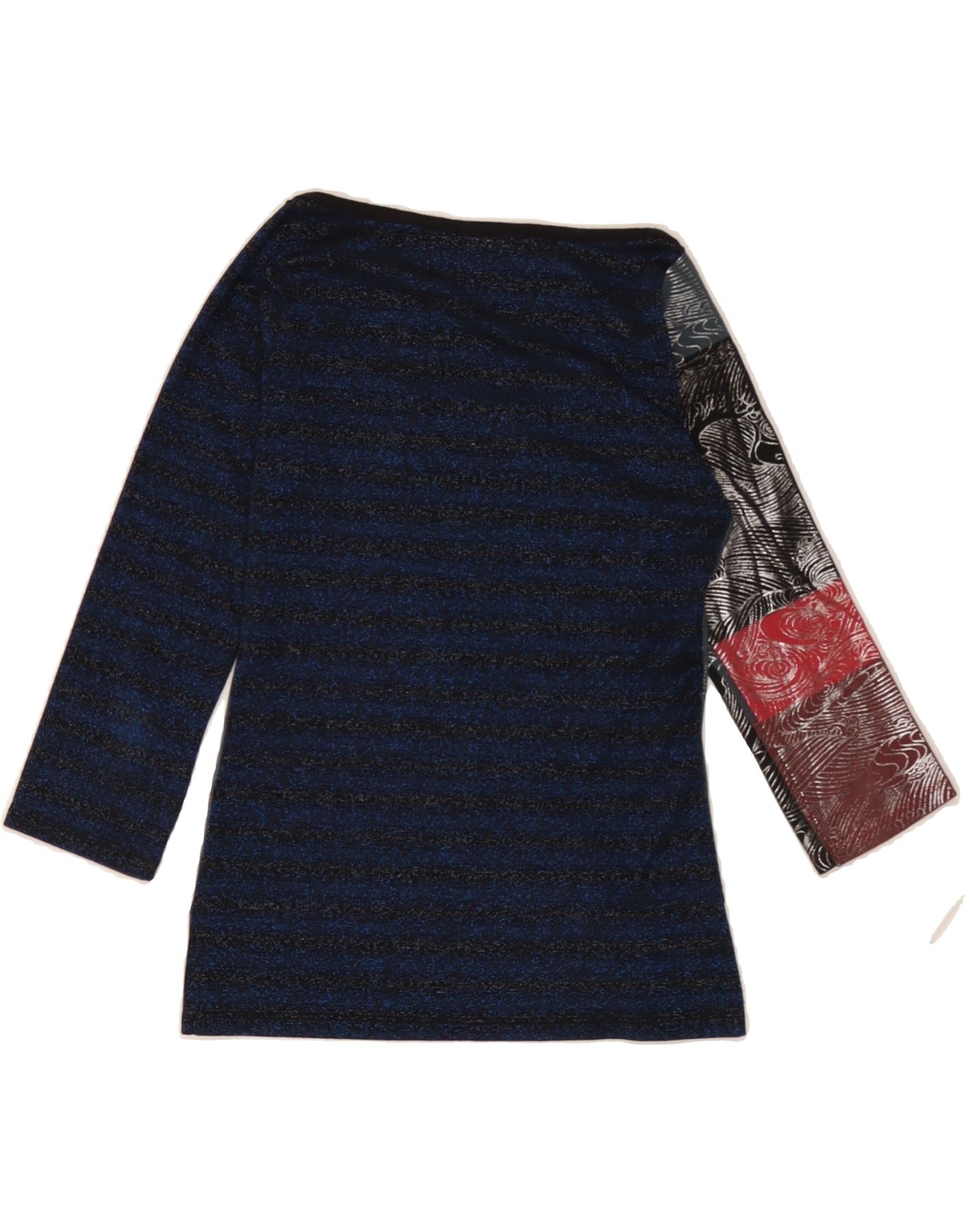 CUSTO BARCELONA Womens Graphic Top 3/4 Sleeve Size 1 Small Navy Blue