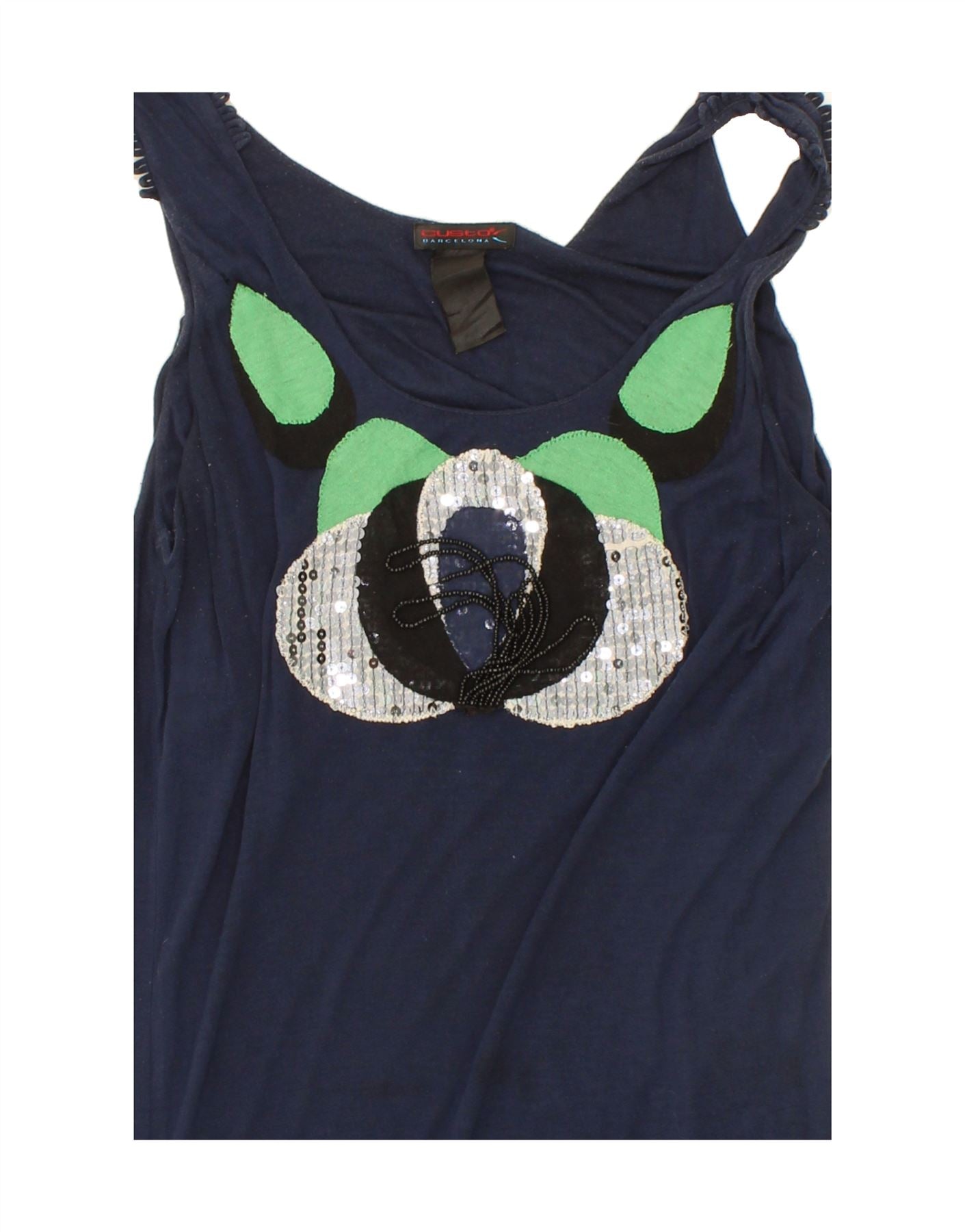 CUSTO BARCELONA Womens Graphic Vest Top UK 10 Small Navy Blue