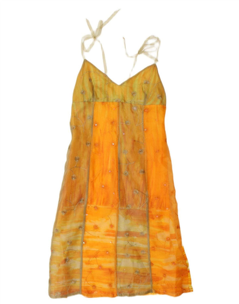 CUSTO BARCELONA Womens Slip Dress UK 10 Small Orange Floral Cotton