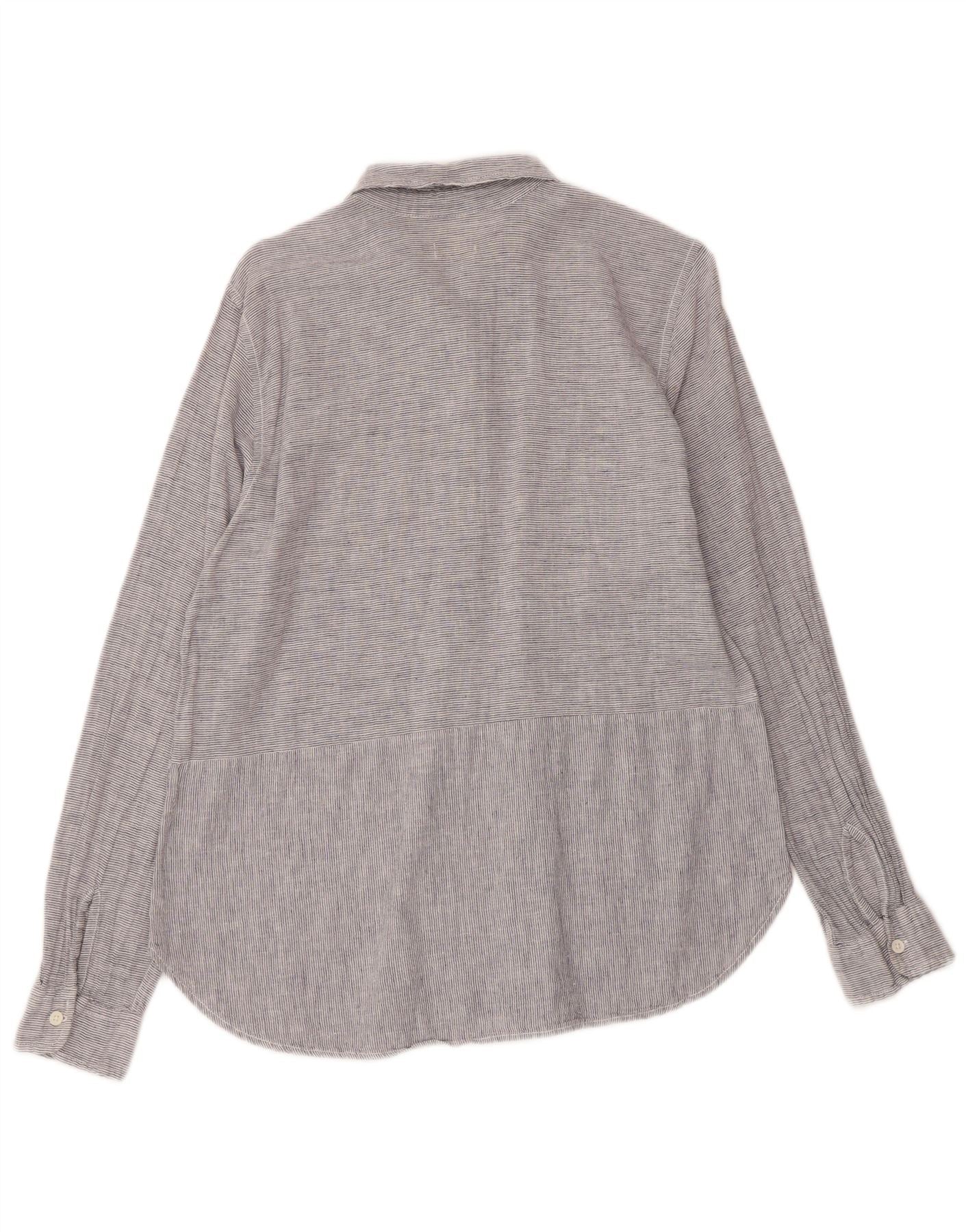Dack's Camisa tipo pulóver para mujer UK 46 Grande Gris Lino a rayas