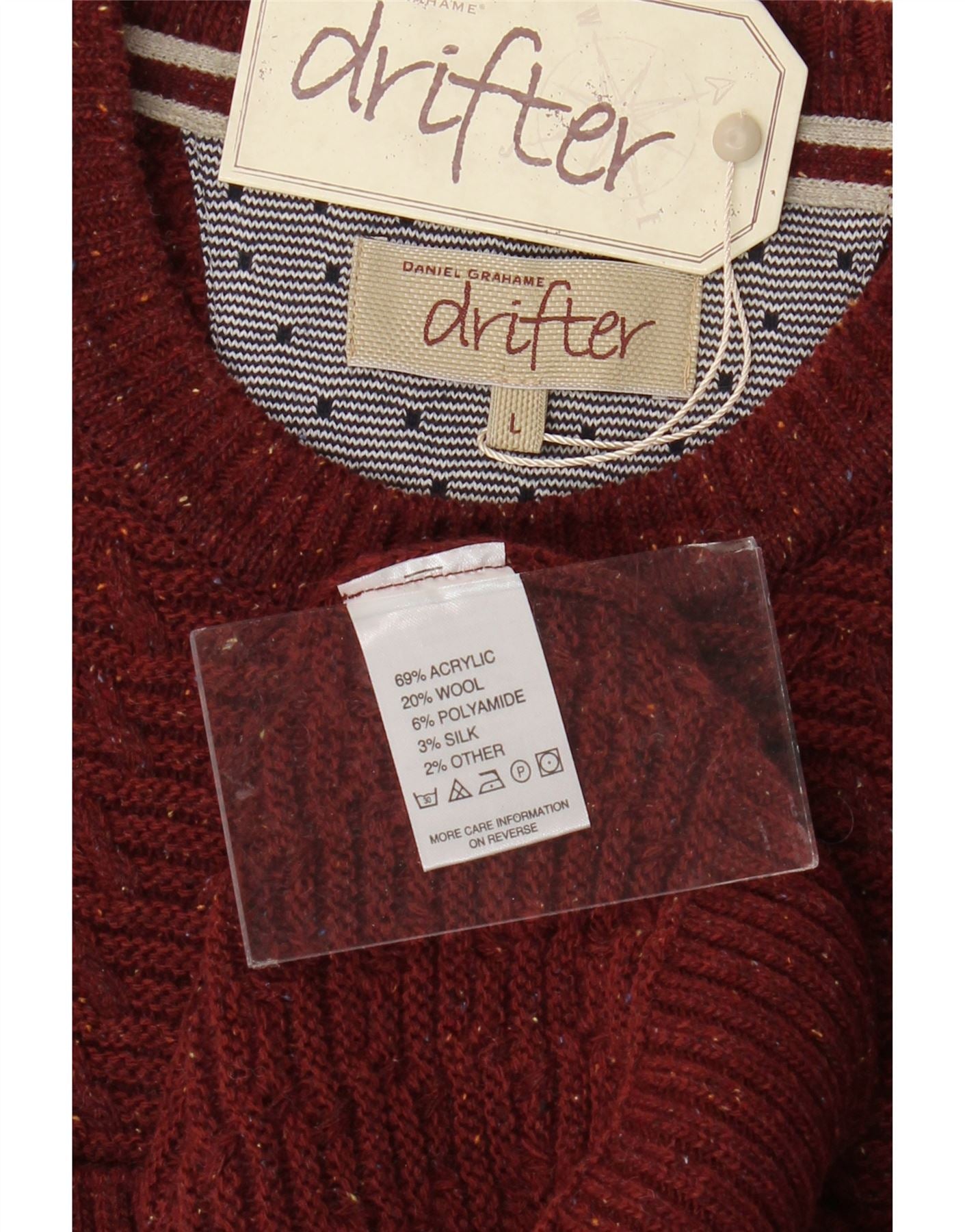 DANIEL GRAHAME Jersey Drifter con cuello redondo para hombre, talla grande, color burdeos