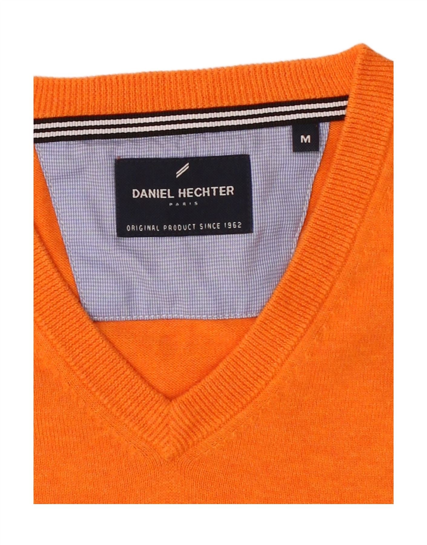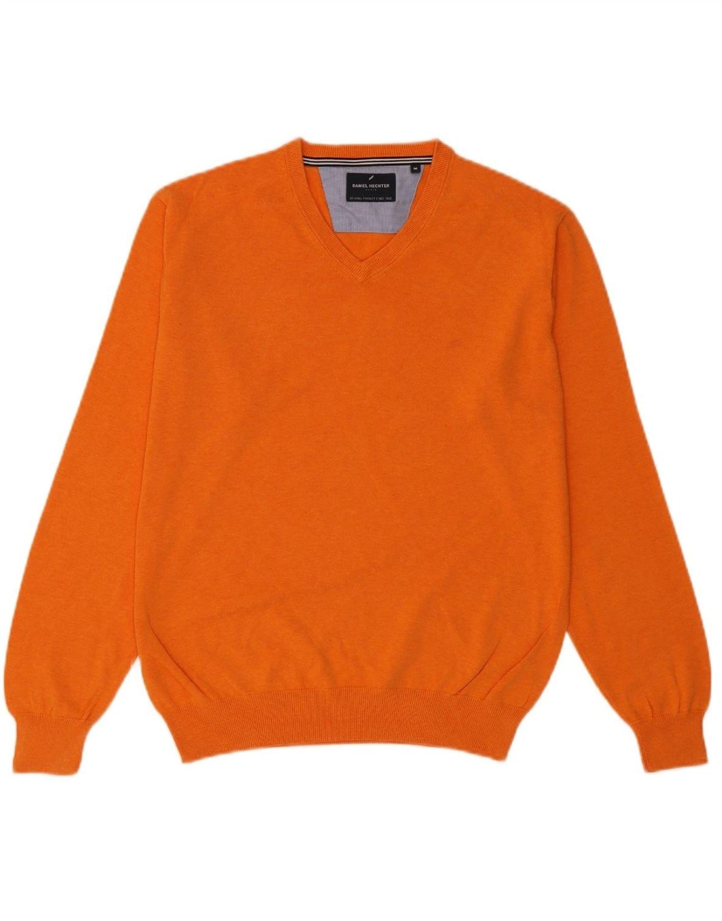 DANIEL HECHTER Mens V-Neck Jumper Sweater Medium Orange Cotton