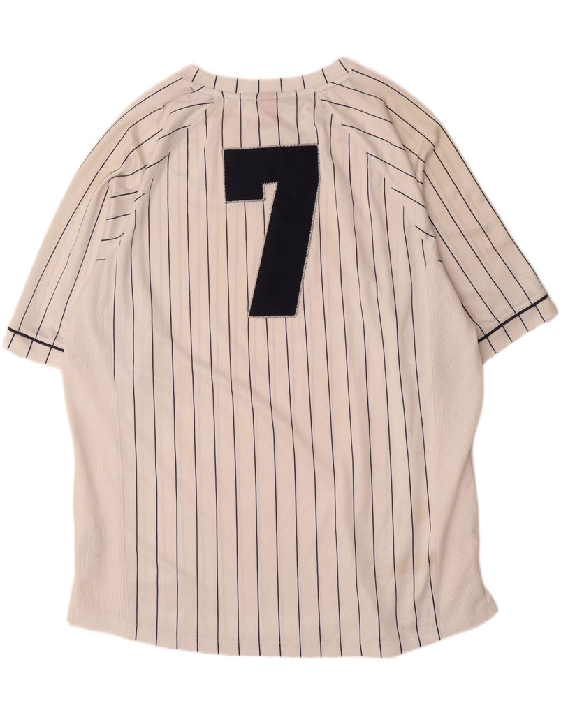 - AI Condition: Pre-owned | grade: Moderate | location: On the shoulders, upper back, and around the collar | type: Discoloration | grade: Moderate | location: Throughout the fabric, particularly noticeable on the white areas | type: Visible wear
