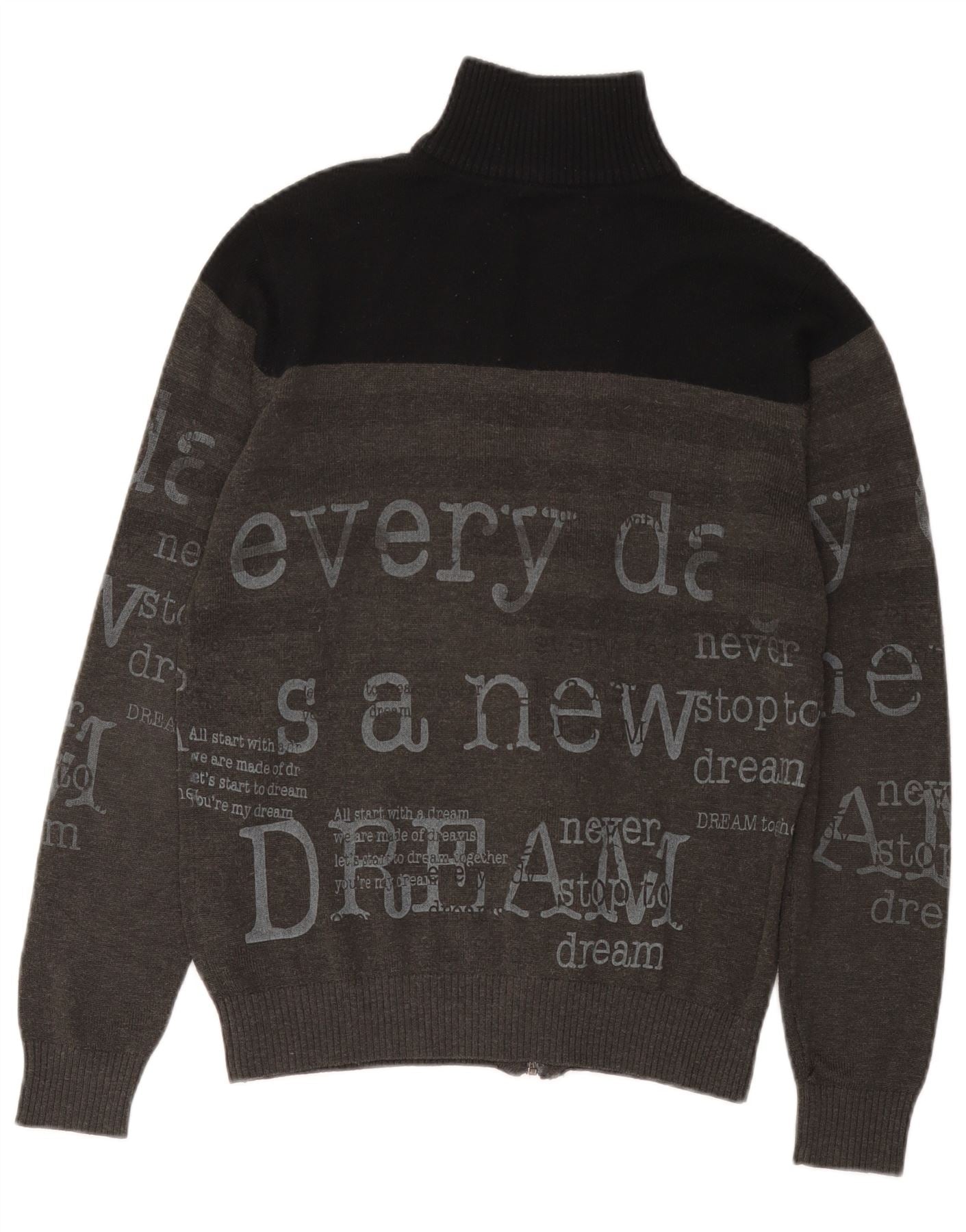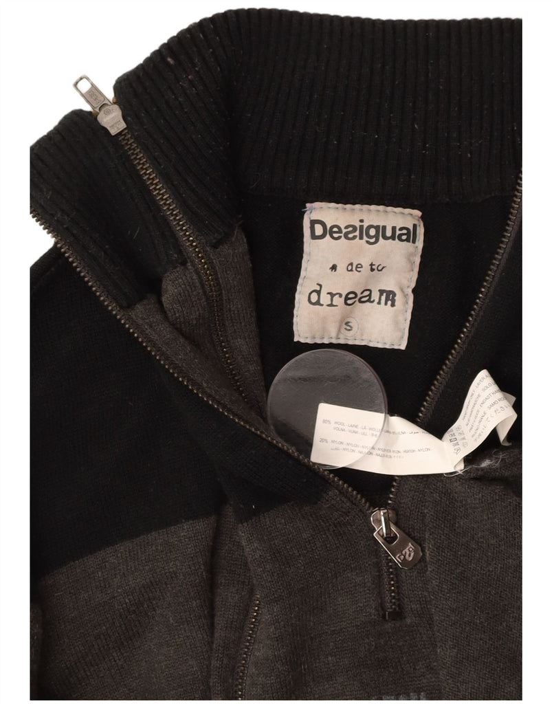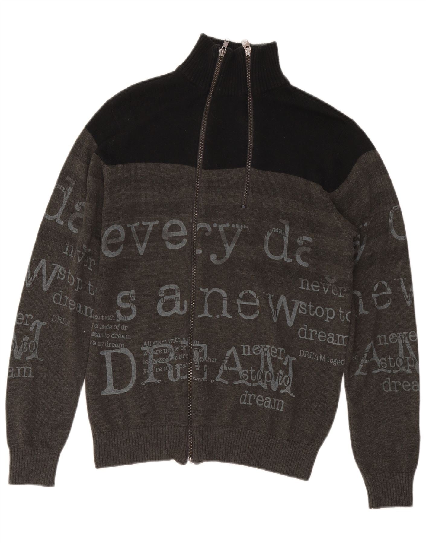 DESIGUAL Hombre Cárdigan gráfico suéter pequeño de lana gris con bloques de color