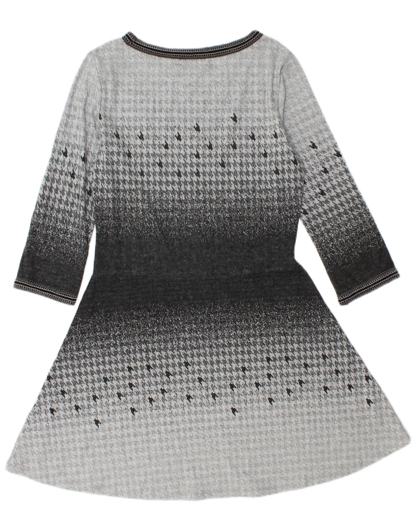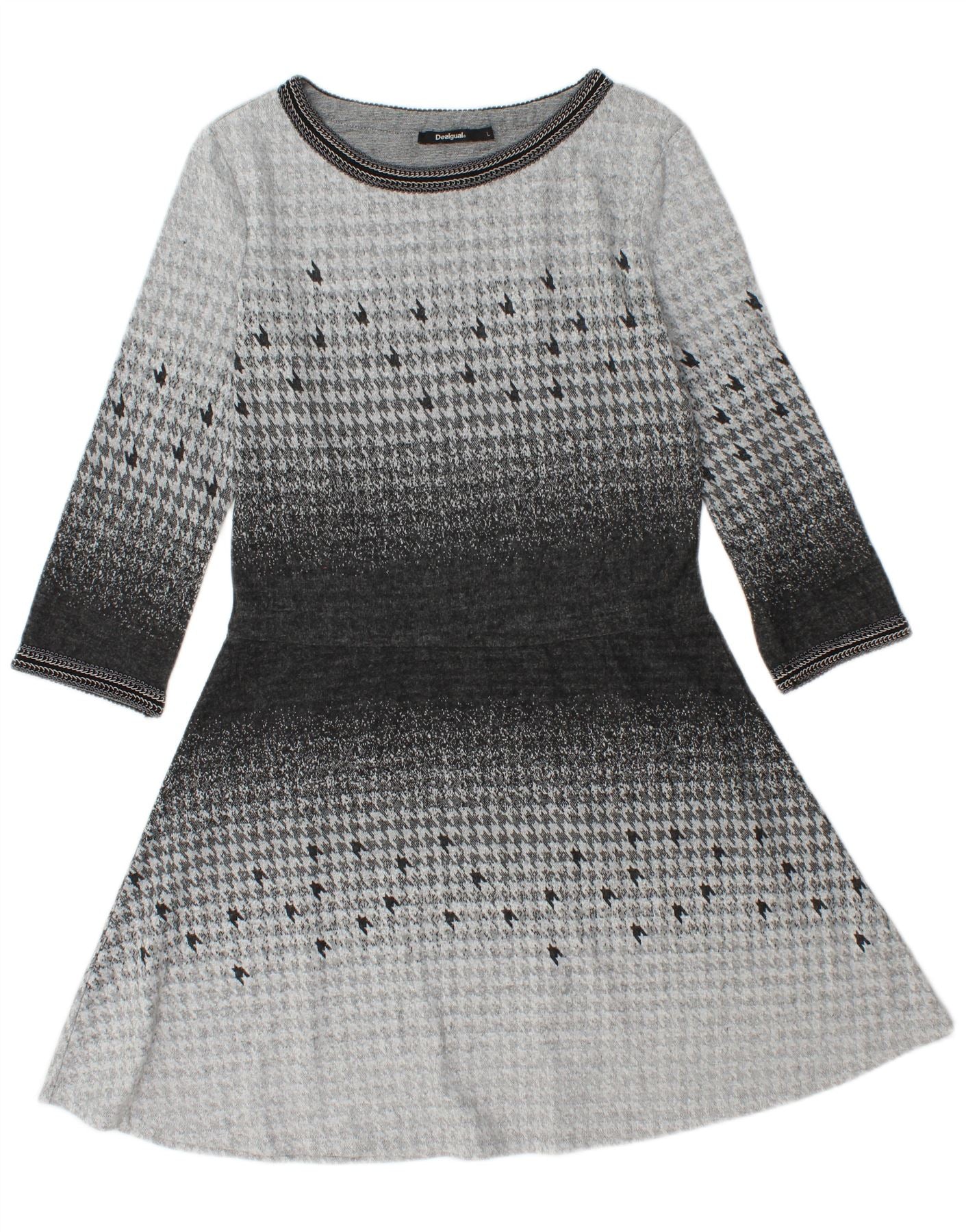 DESIGUAL Vestido acampanado de manga 3/4 para mujer UK 44 Grande Gris Pata de gallo