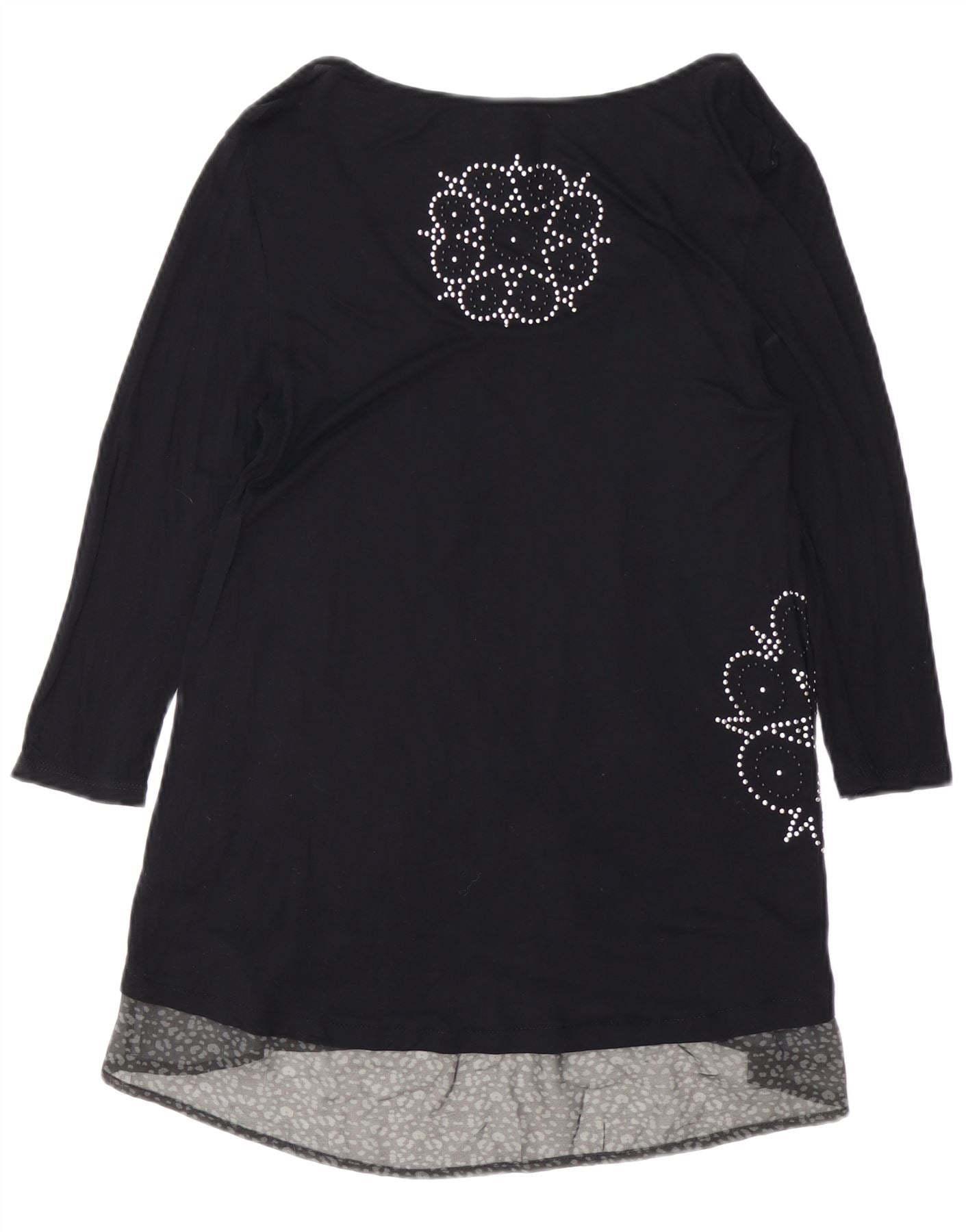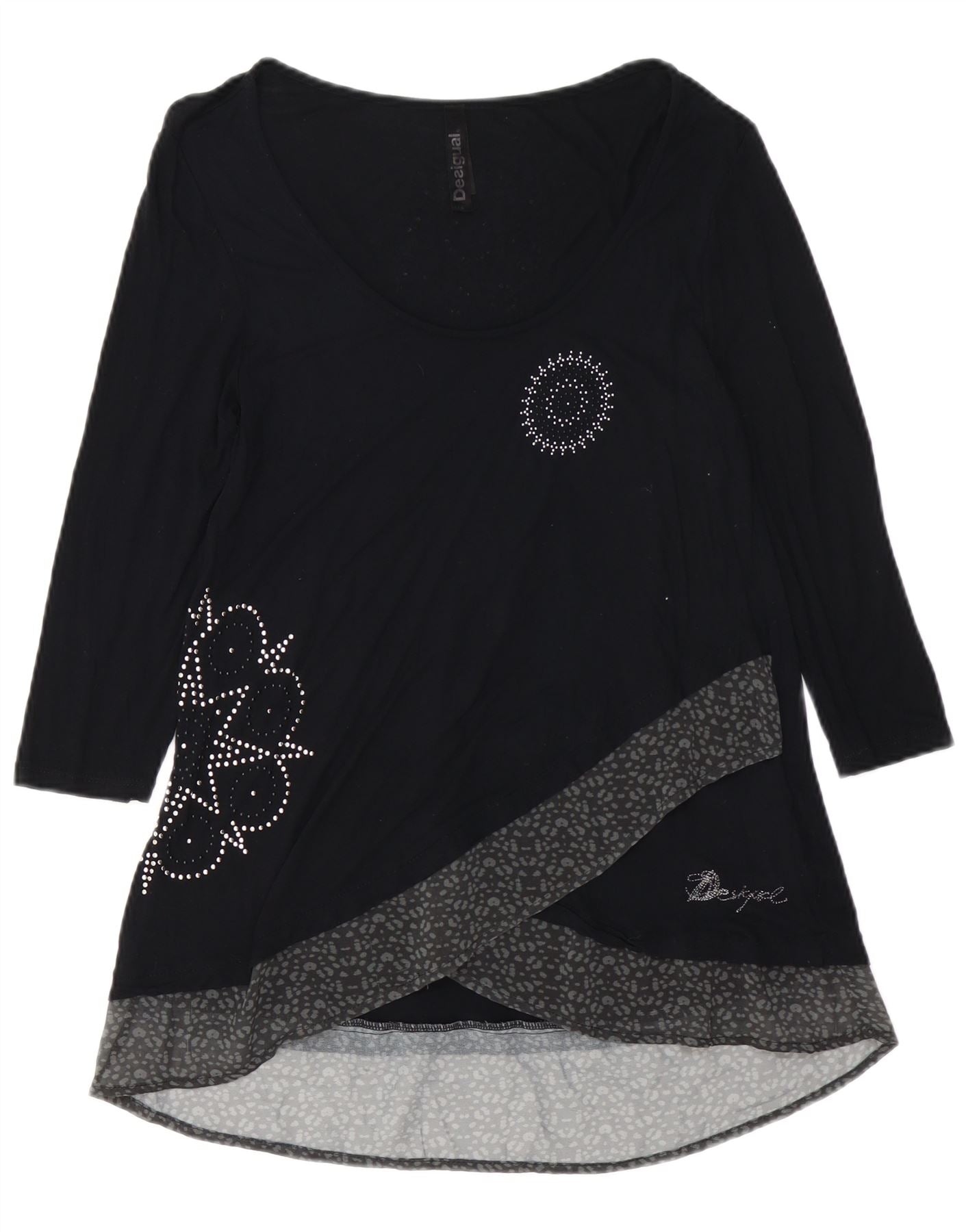 DESIGUAL Vestido acampanado gráfico de manga 3/4 para mujer UK 42 Viscosa negra mediana