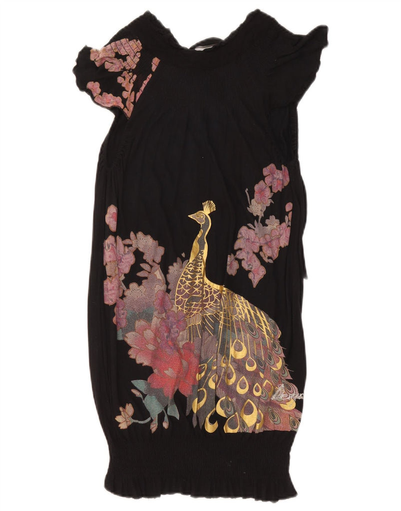 DESIGUAL Womens Bubble Dress UK 10 Small Black Animal Print Viscose