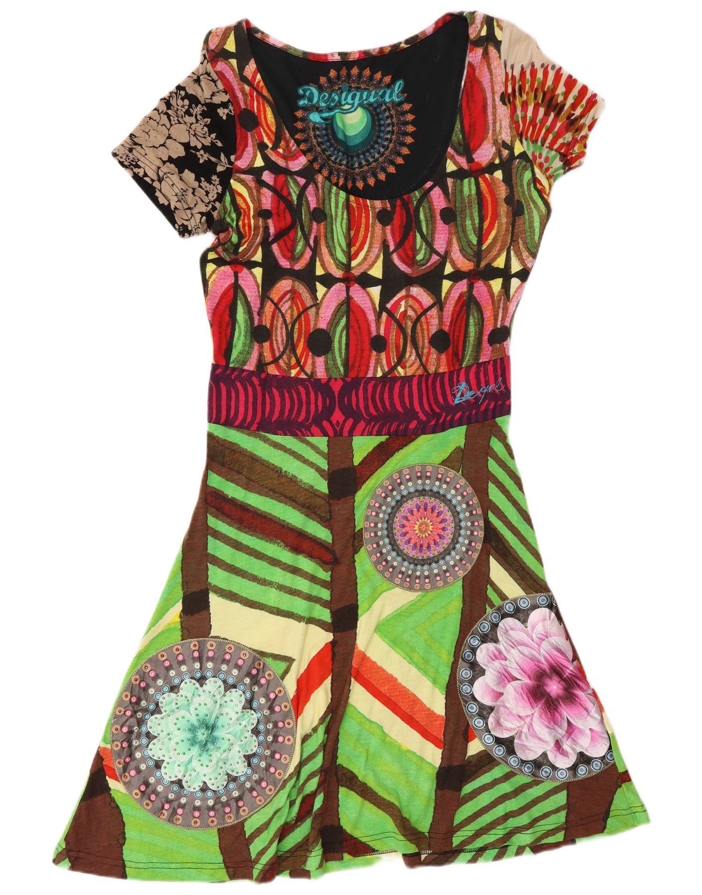 Desigual Vestido gráfico A-Line para mujer UK 44 Grande Multicolor Geométrico