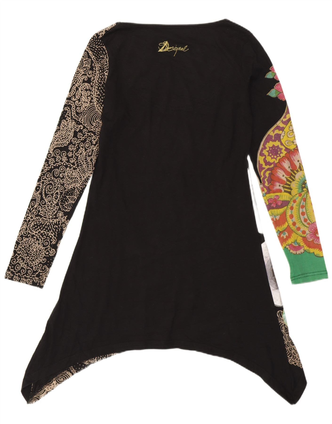 Desigual Mujer Gráfico Túnica Asimétrica Top Reino Unido 10 Pequeño Negro Floral