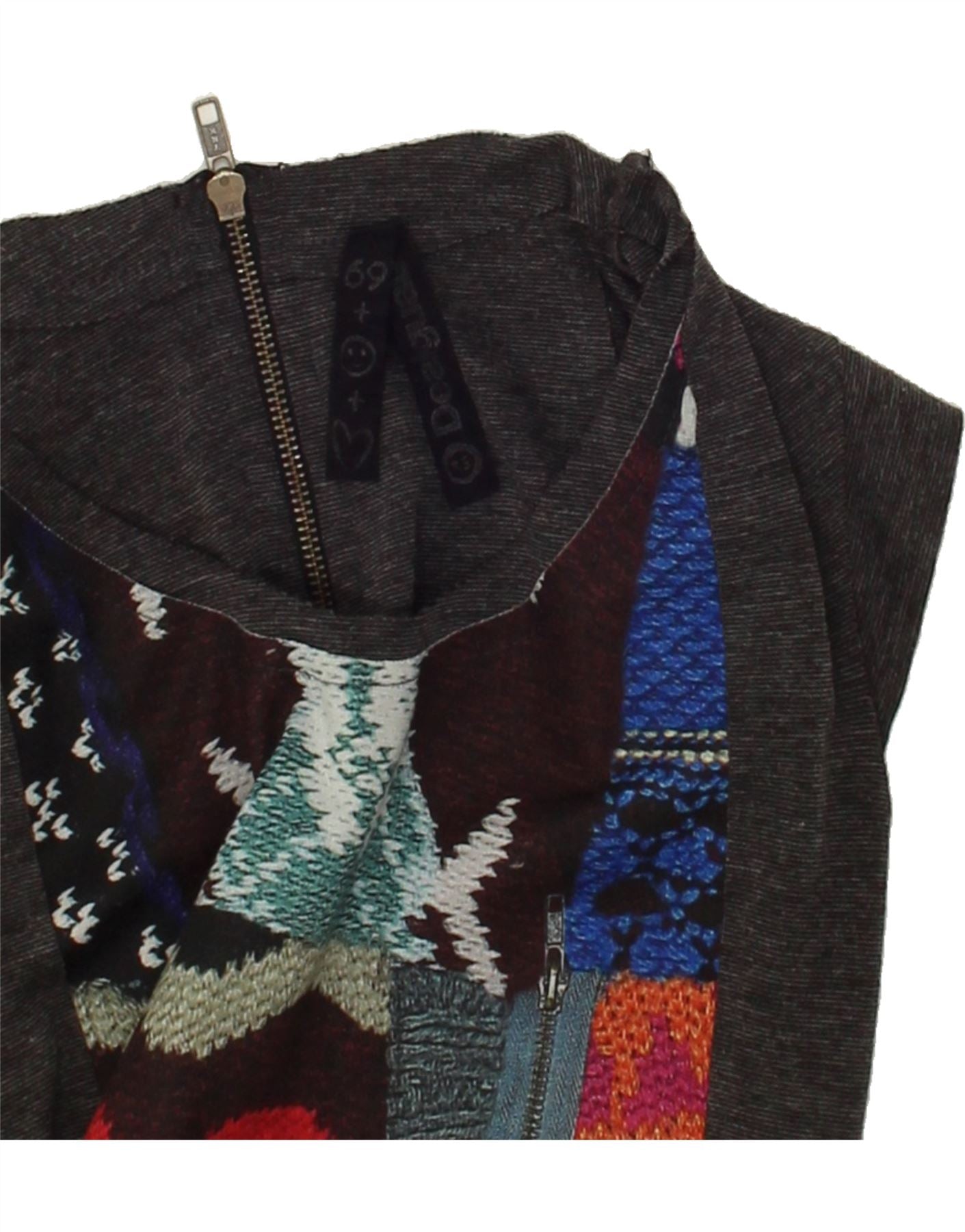 DESIGUAL Womens Graphic Sheath Dress UK 6 XS Grey Patchwork
