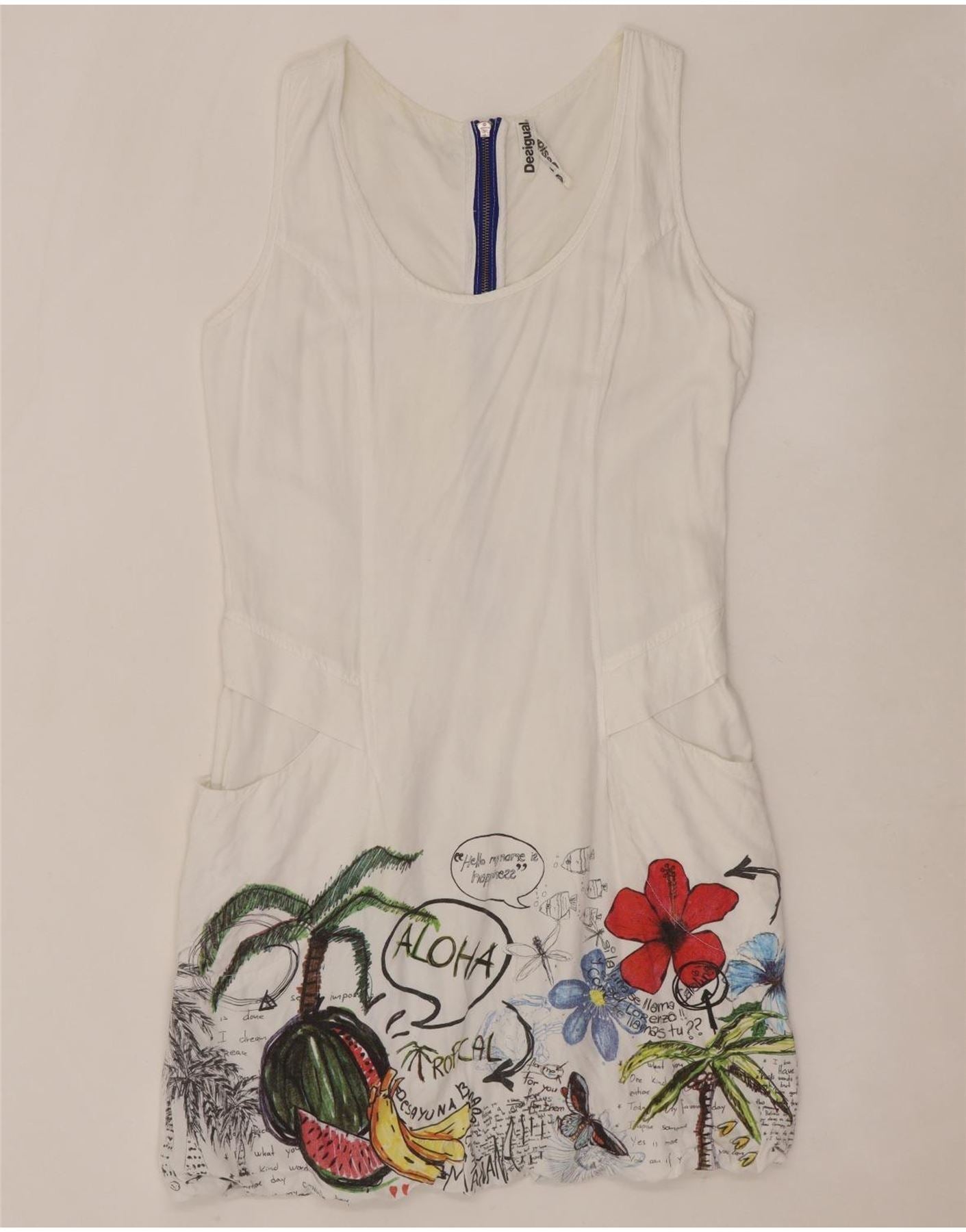 DESIGUAL Vestido de burbujas sin mangas con estampado gráfico para mujer EU 40 Medium White Floral
