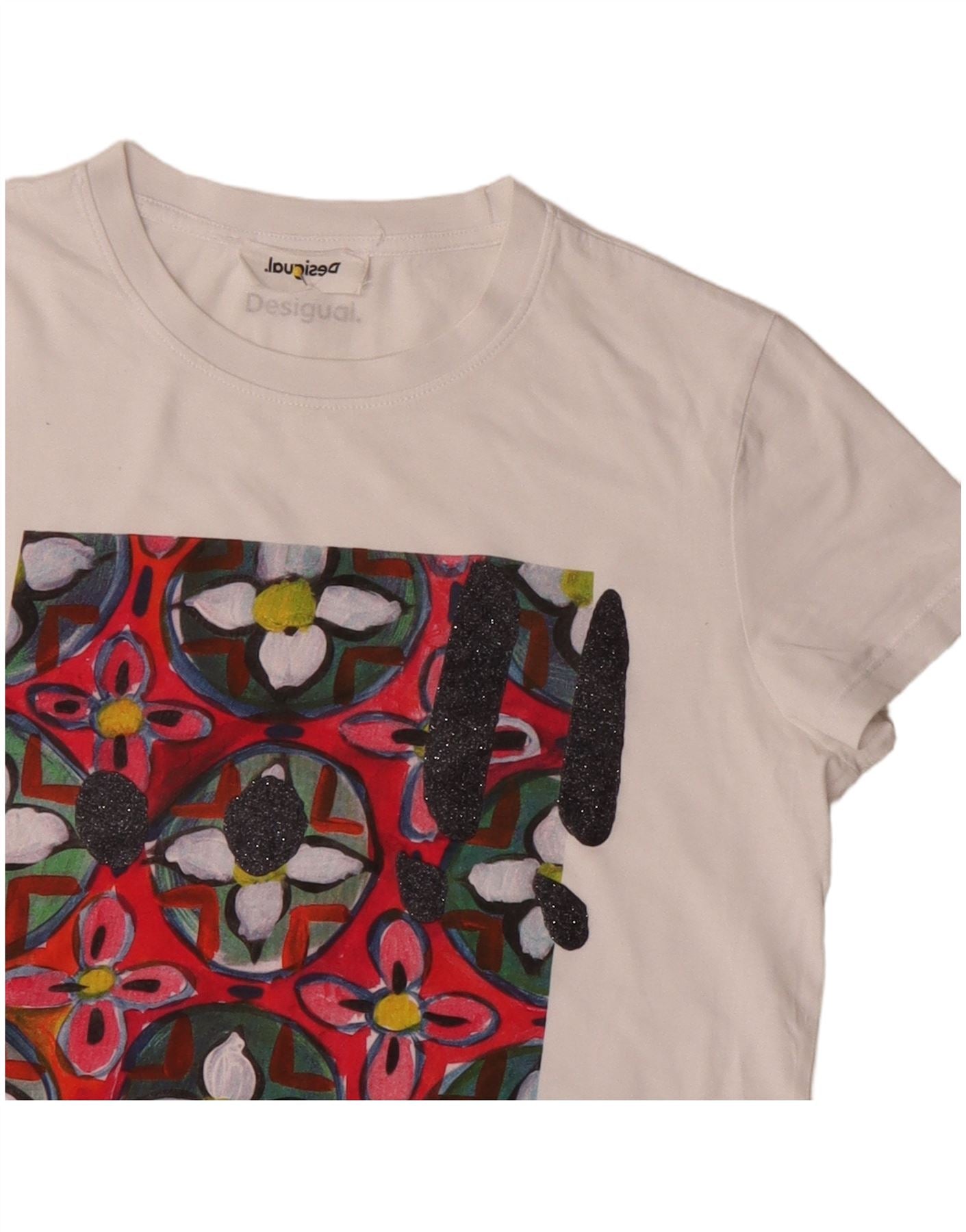 Desigual Mujer Camiseta Gráfica Top UK 12 Medium Blanco