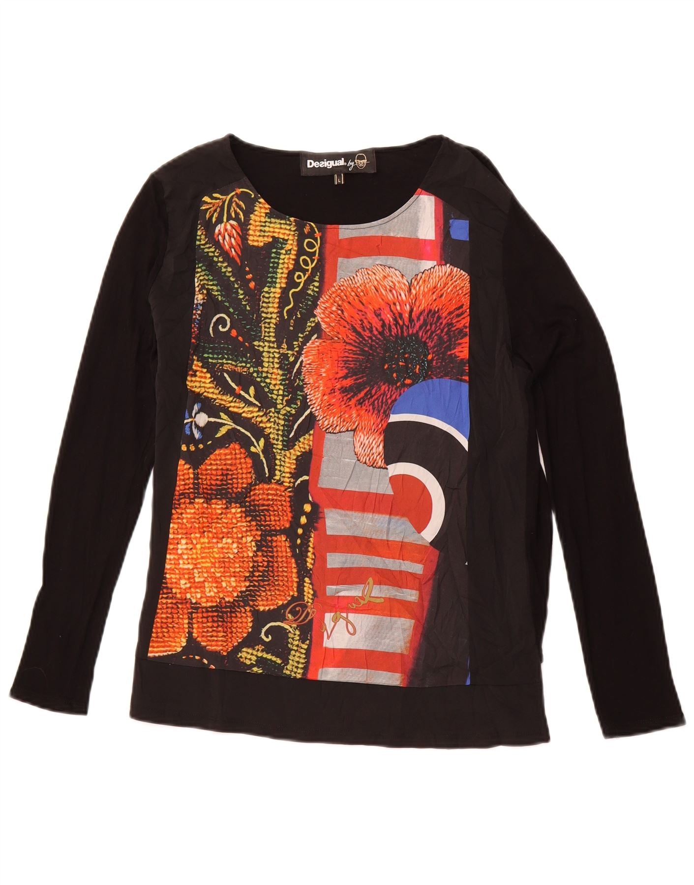 DESIGUAL Top gráfico para mujer de manga larga UK 44 Grande Viscosa floral negra